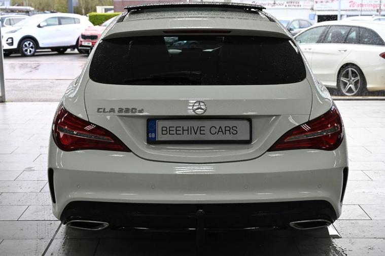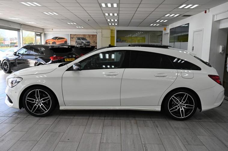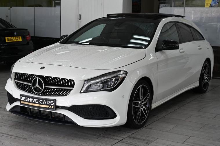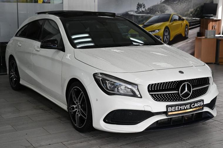 DRIVE AWAY TODAY OR HOME DELIVERY TO YOUR DOORSTEP FINANCE & PART EXCHANGE ARRANGED ONLINE** 7 DAY MONEY BACK GUARANTEE** Lovely car Mercedes Cla220d amg sport shooting brake in metallic white with service history sat nav cd radio bluetooth media usb panoramic glass roof reversec camera half leather seats with armrest electric door mirrors front and rear parking aid sensors xenon lights flat bottom steering wheel with f1 style paddleshifts eco comfort sport individual dynamic driving mode electric push button tailgate alloys privacy