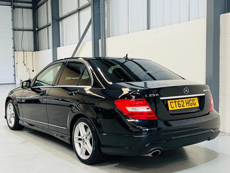MERCEDES-BENZ C-CLASS 2.1 C250 CDI BlueEfficiency AMG Sport Saloon 4dr Diesel G-Tronic+ Euro 5 (s/s) (204 ps) Registration: CT62HGGYear: 2012 (62)Mileage: 73, 000 miles Fuel: DieselTransmission: Automatic (G-Tronic+)Colour: Black A powerful and refined executive saloon offering strong performance, smooth driving comfort, and sporty AMG styling. This C250 CDI AMG Sport is powered by the 2.1-litre diesel engine producing 204 PS, paired with the reliable G-Tronic+ automatic gearbox for effortless and responsive driving. Finished in Black, this AMG Sport model combines a sleek exterior design with a premium interior, making it a great choice for both everyday use and long-distance driving. This well-maintained example has covered just 73, 000 miles and comes with Service History, Free HPI Certificate, 3 Months Warranty, and all original booklets and manuals. Optional Extras Metallic black paint - £645 Key Features 2.1 CDI diesel engine producing 204 PS G-Tronic+ automatic transmission AMG Sport exterior and interior styling AMG alloy wheels Sports suspension Half leather interior Bluetooth phone connectivity Dual-zone climate control Cruise control and speed limiter LED daytime running lights Multifunction steering wheel ISOFIX child seat points Additional Information Euro 5 diesel Combined MPG: ~55 mpg 062 mph: ~7.4 seconds Only 73, 000 miles with service history Strong performance with excellent comfort Well-maintained, high-spec AMG Sport model