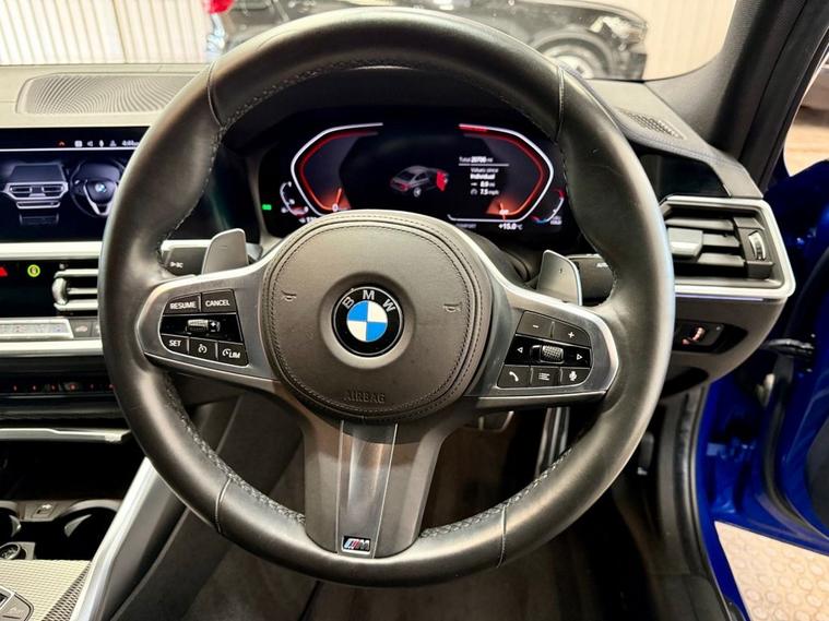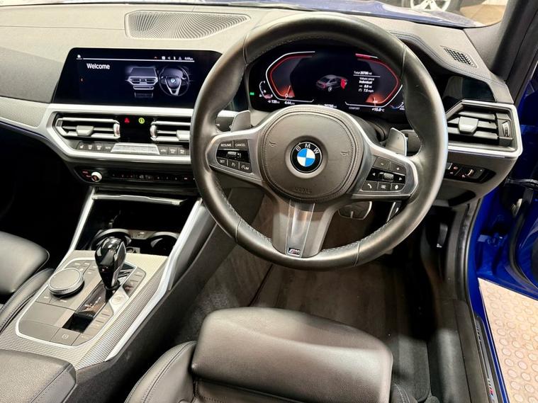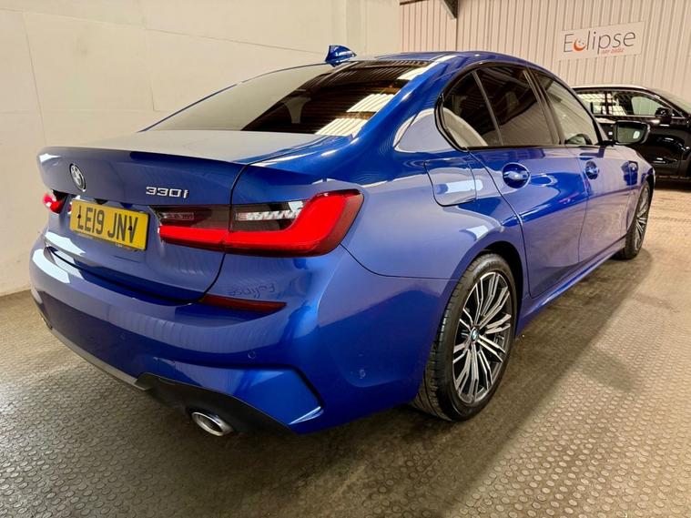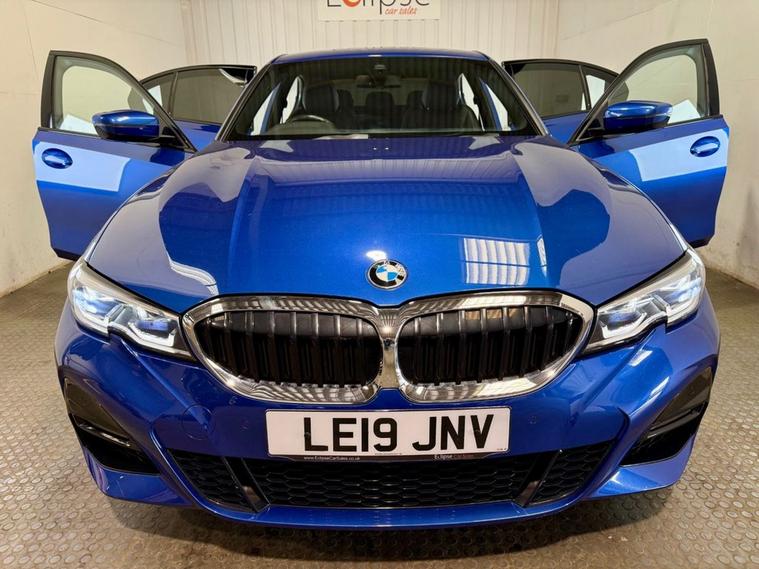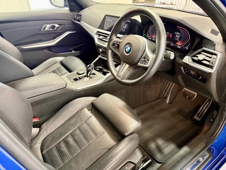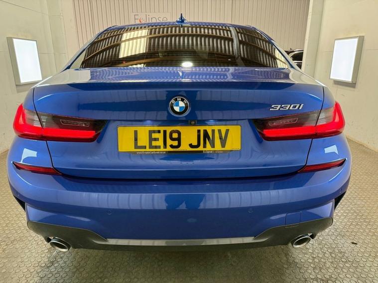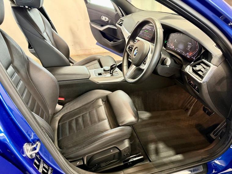 BMW 3 Series 2.0 330i M Sport Saloon first registered in July 2019. Finished in Portimao Blue with a Black Vernasca Leather Interior and 18 Inch Alloy Wheels. Spec Includes Cruise Control with Speed Limiter | Heated Front Seats | Three Zone Climate Control | Rear View Camera with Front and Rear Sensors | DAB Radio | Bluetooth Connectivity | Satellite Navigation | Multifunction Steering Wheel | Selectable Drive Modes | Electrically Adjustable and Folding Door Mirrors | Instrument Panel in Sensatec. Serviced at 9089 Miles | 10121 Miles | 10670 Miles and again by us at 20786 Miles. MOT Due October 2026.