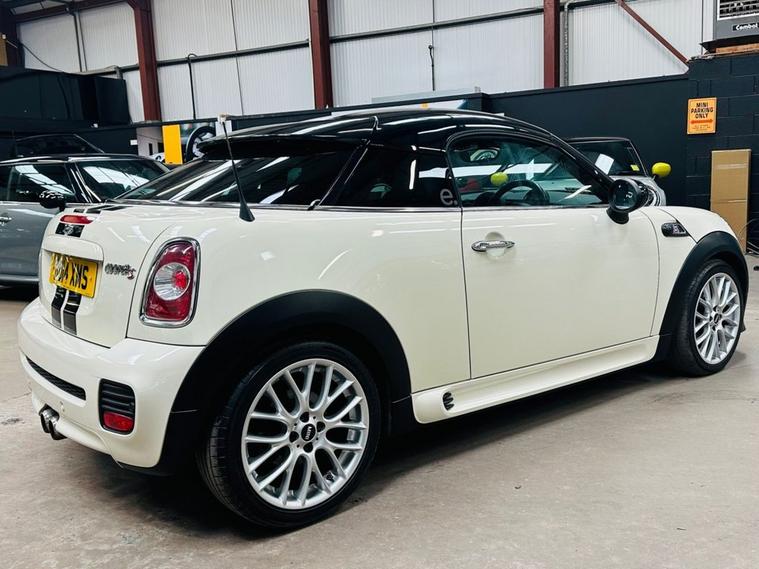 A superb MINI 1, 6 Cooper S Coupe in Pepper White with Carbon Black Interior Trim which has covered 52k miles. JCW Sport Pack, Heated Seats and Media Pack. Service History