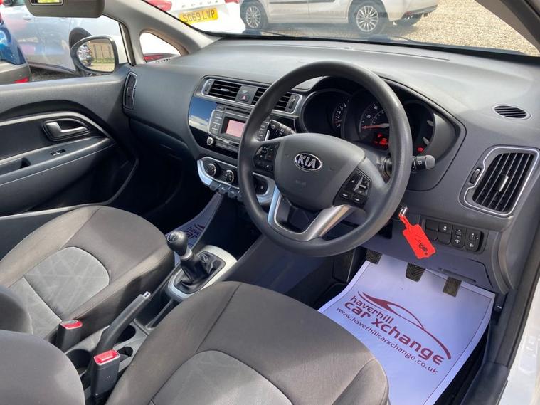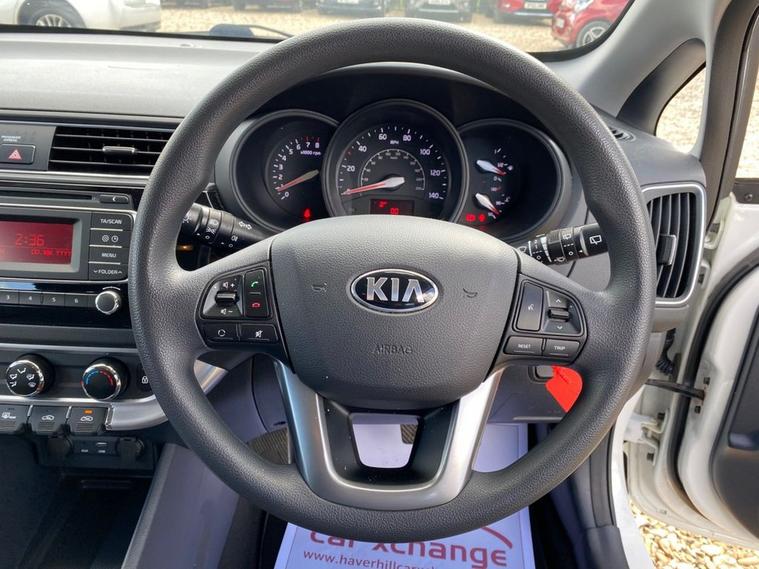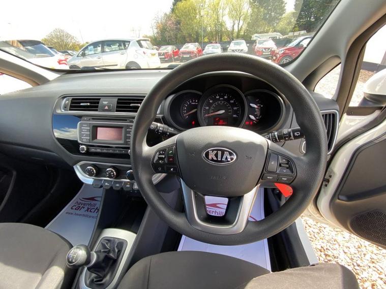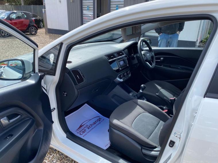 ONLY 28.543 MILES+£35 A YEAR ROAD TAX+ARKAMYS ENHANCED SOUND SYSTEM-DAB DIGITAL RADIO-CD-MP3+BLUETOOTH WITH MUSIC STREAMING+DAYTIME RUNNING LIGHTS+CLEAR WHITE PAINT+15 INCH STEEL WHEELS. At Haverhill Car Xchange we would like to offer you our EXTREMLEY LOW MILEAGE Kia Rio 1 Hatchback which has been finished in a Clear White paint with Black Cloth upholstery. Specification Includes an Arkamys Enhanced Sound System with features DAB Digital Radio-CD-MP3 Player, Bluetooth with Music Streaming, USB Connection, AUX Connectivity, 12 Volt Power Socket, My Music Memory, Gear Shift Indicator, Front Electric Windows with Drivers Auto Up-Down Function, Body Coloured Bumpers/Door Handles and Door Mirrors, Daytime Running Lights, High Mounted Break Light, Multifunction Steering Wheel, 15 Inch Steel Wheels, Power Steering, Hill Start Assist, ABS Breaking System, Airbags, Alarm, Immobiliser, Remote Central Locking and ISOFIX Anchorage Points for Child Seats.