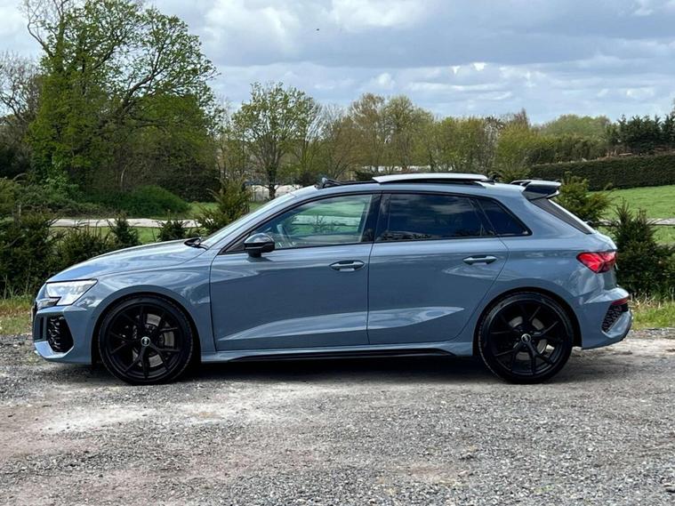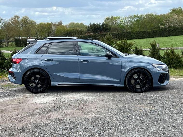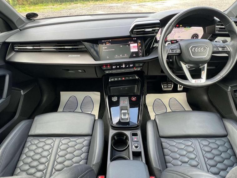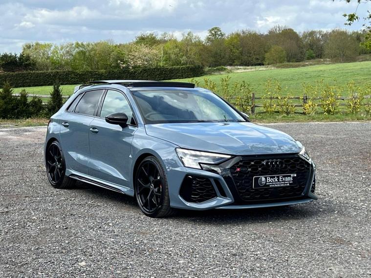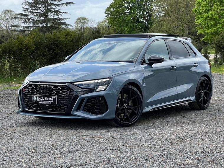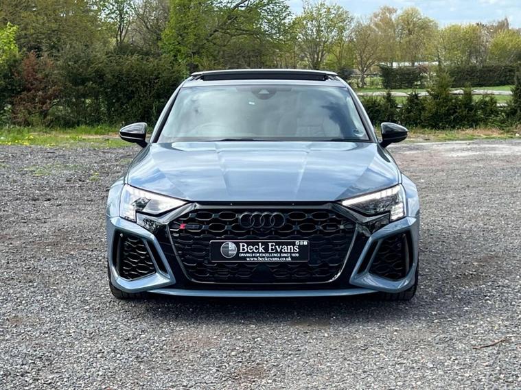 NATIONWIDE DELIVERY AND CLICK AND COLLECT Available. Here At Beck Evans We Are Proud To Introduce This Stunning Audi RS3 Vorsprung TFSI Quattro Hatchback, A True Powerhouse On Wheels. With Only Three Owners From New and Comes With Audi Main Dealer Service History, LOW MILEAGE. This Vehicle Is Finished in Kemora Grey Metallic with Full Black Fine Nappa Leather Seats With RS Embossing, Heated Front Seats, Full Panoramic Glass Sliding Sunroof with Sunblind, Full decorative Carbon Interior Trim, Satellite Navigation, Parking Assist Sensors, DAB Radio, Smartphone Integration with Apple Carplay, Bluetooth, Phone Prep, Dual Zone Automatic Climate Control Air Conditioning, Leather Multifunction Steering Wheel, Automatic Lights, Rain Sensors, 19 Inch 5 Y Spoke Alloy Wheels, Lumbar Support, Adaptive Cruise Control, Adaptive Suspension With Audi Drive Select, Aluminium Interior Elements, Ambient Lighting Package, Audi Beam, Audi Matrix LED Headlights with LED Rear Lights, Audi Pre Sense Front, Audi Virtual Cockpit with RS Specific Display, Auto Dimming Rear View Mirror, Black Styling Package, Brake Calipers Painted in Black with RS Logo, Traffic Sign Recognition, Cloth Headlining, Collision Avoidance Assist, Comfort and Sound Package, Electric Heated Folding Wing Mirrors, Driver Assistance Package, Electronic Stabilisation Control, Front Centre Armrest, Hill Hold Assist, Lane Departure Warning, Pedals in Stainless steel, Privacy Glass, RS Body Styling, RS Emblem, RS Sport Exhaust System, Rear Suspension, Voice Activated Controls, Isofix Rear Seats, Remote Central Locking, Alarm, the Audi Rs 3 exudes sophistication and performance. The 2.5 RS 3 Sportback Vorsprung TFSI Quattro Semi-Auto 4WD 5dr model is designed to impress, with its cutting-edge technology and top-notch engineering. Experience the thrill of driving with the Audi Rs 3, where power meets precision. Don't miss your chance to own this ultimate driving machine. Visit us today and take the Audi Rs 3 for a spin. additional fees may apply, please note, not all cars are kept on site please call to make appointment and to avoid disappointment. pre-delivery check, free parts and labour warranty, Hpi Checked, Part Exchanges Welcome. Low Rate Finance/PCP Finance Options Available, dealer's website call now Tel: 02030182143 BUY WITH CONFIDENCE BECK EVANS A FAMILY RUN BUSINESS EST: 1970
