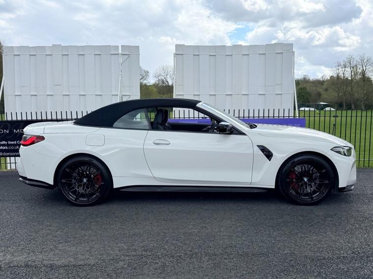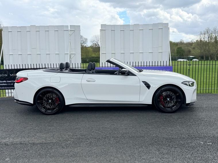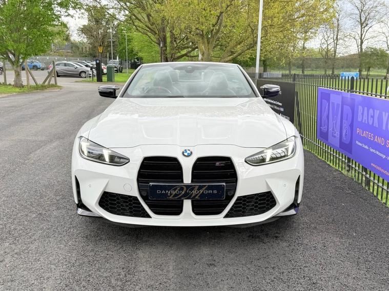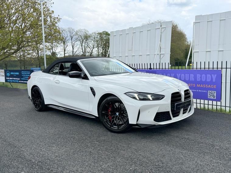 ***FOR SALE we have an absolutely stunning BMW M4 Competition XDrive Convertible in Alpine White! With only 1 Owner from new and full BMW service history! Car comes with 2 keys and features this following incredible specification: M Head-Up Display, Reversing Assist Camera with Parking Sensors, Apple CarPlay/Android Auto, Harman Kardon Speakers, Electric Heated Merino Leather Seats with Memory Function, Heated Steering Wheel, Warm Air Collar, DAB Radio, Park Assist, Ambient Lighting, Cruise Control, M1 & M2 Customisable Driving Modes, BMW Connected Drive Services, Wireless Phone Charging, Electric Power Folding Wing Mirrors, BMW LED Headlights, 19/20 BMW 826M Black Alloys! Balance of manufacturers warranty until October 2027! COMPETITIVE FINANCE RATES FROM 8.9%!