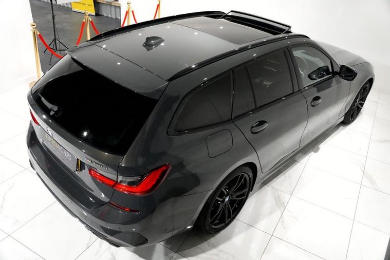 Exoria Cars are pleased to offer this BMW 3 SERIES 3.0 M340i MHT Touring 5dr Petrol Hybrid Auto xDrive Euro 6 (s/s) (374 ps) registered in 19/12/2020. This particular model is presented in Dravit Grey featuring 19in Alloy Wheels. This vehicle has many optional spec extras. These include (but are not limited to) Panoramic Glass Sunroof, Shadowline Plus Pack, Visibility Pack, Comfort Plus Package, Technology Plus Pack, Laser Lights, Driving Assistant Professional (Adaptive Cruise Control, ) Towbar - Electric, Fully Electric & Memory Seats, Steering Wheel - Heated, Parking Assistant Plus, Loudspeaker System - Harman Kardon, Heads Up Display, Gesture Control, Heated Seats, Enhanced Bluetooth With Wireless Charging, Electric Folding Mirrors, active safety features and much more. FULL BMW SERVICE HISTORY. For full details please do enquire via email or phone or visit our website dealer's website This vehicle comes with 2 keys, a full (clear) HPI check and a 6 month warranty with Autogaurd. AA CARS APPROVED DEALER. All of our vehicles are thoroughly inspected before sale ensuring peace of mind to all customers of Exoria Cars. All 5* reviews on all platforms giving you peace of mind with your new purchase! AA Checks/RAC Checks are welcome! Any used car purchase also qualifies for a free interior and exterior deep clean detail worth £400 with our partnered company DD Detailing who are one of the largest detailing companies in the UK. This vehicle is ready to drive away today! 1 Owner from new. PCP and HP finance available from 8.9% APR (subject to status)