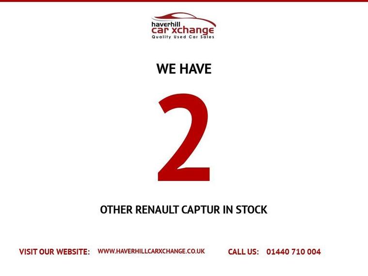 ONLY 39, 372 MILES+£20 A YEAR ROAD TAX+EXCELLENT SERVICE HISTORY CONSISTING OF X10 SERVICES+7 INCH TOUCHSCREEN NAVIGATION SYSTEM-DAB HANDSFREE TECHNOLOGY-BLUETOOTH CONNECTIVITY+CLIMATE CONTROL AIR-CONDITIONING+AUTOMATIC HEADLIGHT ACTIVATION WITH LED DAYTIME RUNNING LIGHTS+AUTOMATIC RAIN-SENSING WINDSCREEN WIPERS+PARKING ASSISTANCE+MERCURY PAINT+17 INCH ALLOY WHEELS. At Haverhill Car Xchange we would like to offer you our EXTREMELY LOW MILEAGE Renault Captur Energy Dynamique S MediaNav SUV which has been finished in a Mercury Silver paint Dark Charcoal Cloth upholstery with Grey Panel. Specification Includes a 7 inch Touchscreen which features a Handsfree Satellite Navigation System-Radio-Bluetooth Connectivity, AUX Input, 12 Volt Power Socket, Climate Control Air-Conditioning, Eco Mode, Cruise Control with Speed Limiter, Front and Rear Electric Windows, Body Coloured Bumpers/Door Handles/Rear Roof Spoiler and Black Gloss Door Mirrors with Integrated Side Indicators, Chrome Front Grille Detail, Automatic Headlight Activation, LED Daytime Running Lights, Cornering Lights, Front Fog Lights, Rear Parking Assistance, Multifunction Steering Wheel, 17 Inch Alloy Wheels, Tinted Rear Glass, ABS Breaking System, Airbags, Alarm, Immobiliser, Remote Central Locking and ISOFIX Anchorage Points for Child Seats.