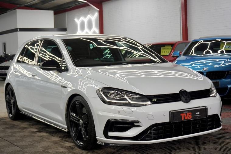 2018 Volkswagen Golf R 2.0 TSI DSG 4 Motion 5 door hatchback- Semi automatic transmission - Pure White with R cloth interior (heated front seats) - 47k miles - 2 former keepers - 2 remote keys - VW main dealer and independent garage service history - DSG and Haldex serviced - just serviced for sale by independent German car specialist - fresh 12 months MOT with no advisories - Platinum warranty - full 12 months AA roadside assistance also included! Uprated suspension! Michelin tyres! Rear sun protection glazing! Black mirrors!