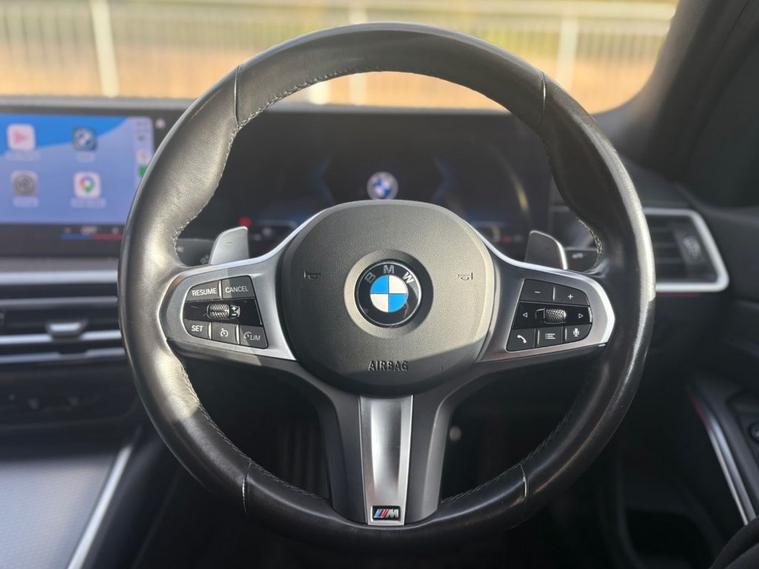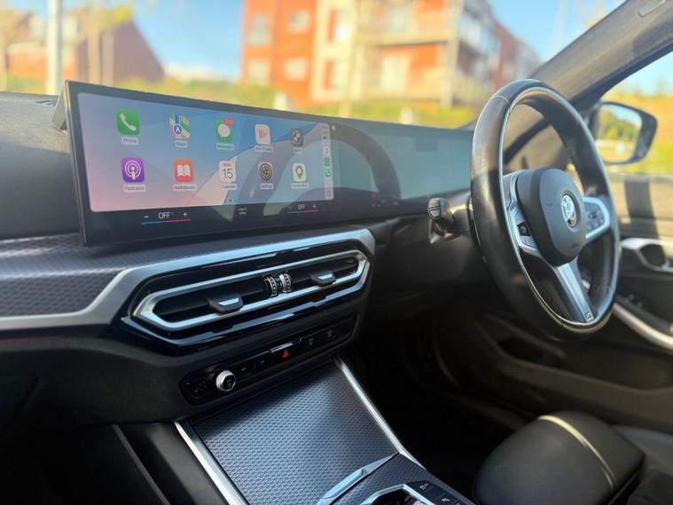 This 2023 BMW 3 Series 320i M Sport is a superb example of German engineering, offering a dynamic driving experience. Powered by a responsive 2.0 litre petrol engine and meeting Euro 6 emissions standards, this M Sport variant is equipped with automatic air conditioning for optimal climate control. Navigating tight spaces is made effortless thanks to the comprehensive Parking Assistant, which includes front and rear sensors along with a rear camera. For enhanced visibility and safety, it features advanced LED headlights, while the Connected Package Pro brings seamless integration with Android Auto and Apple CarPlay. The BMW Live Cockpit Plus, complete with Bluetooth connectivity, ensures you stay connected and informed on every journey. The M Sport trim level signifies a sportier aesthetic and enhanced driving dynamics, setting this 3 Series apart. The inclusion of features like the Parking Assistant and LED headlights demonstrates a commitment to driver convenience and safety, offering a superior experience compared to vehicles without these advanced systems. This BMW 3 Series is designed to provide both exhilarating performance and everyday practicality, making it an excellent choice for those seeking a premium saloon.