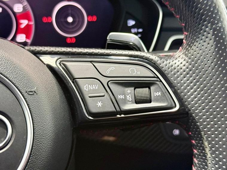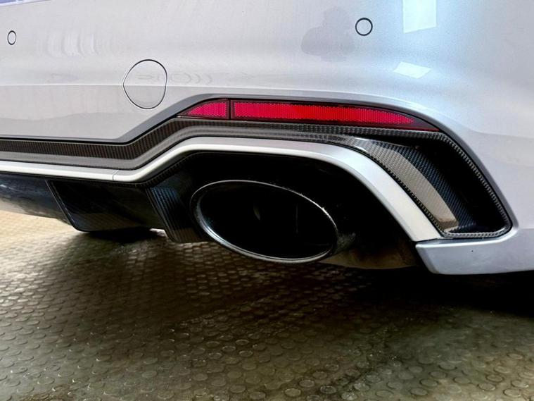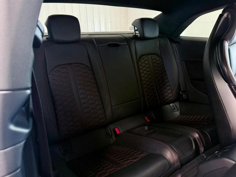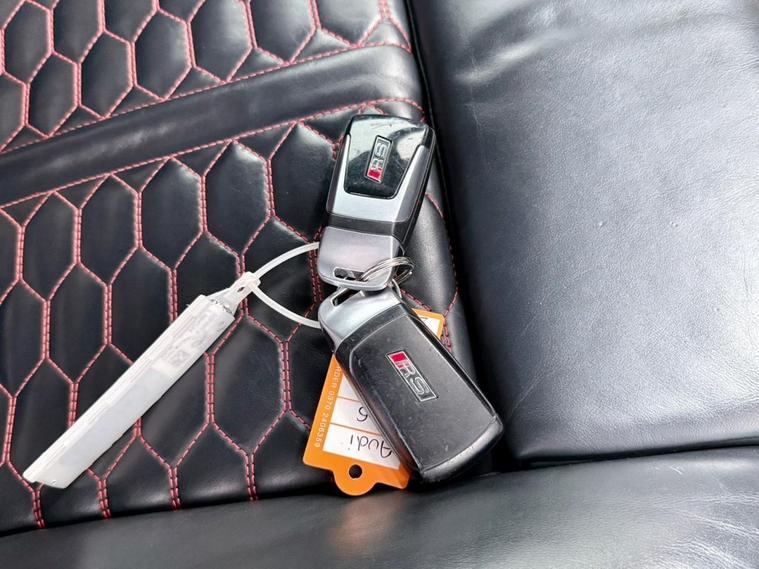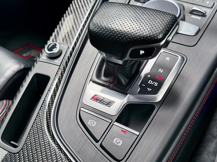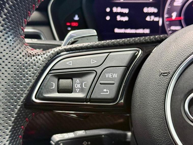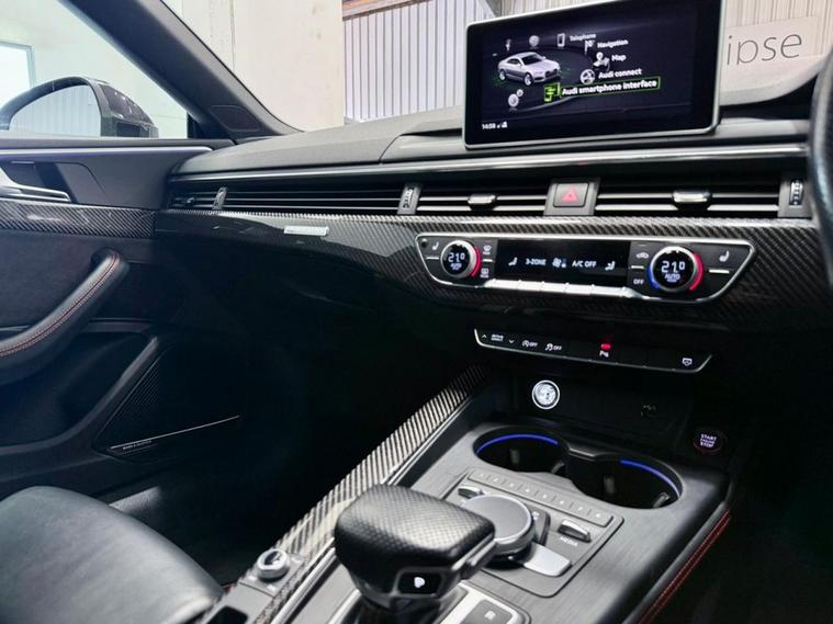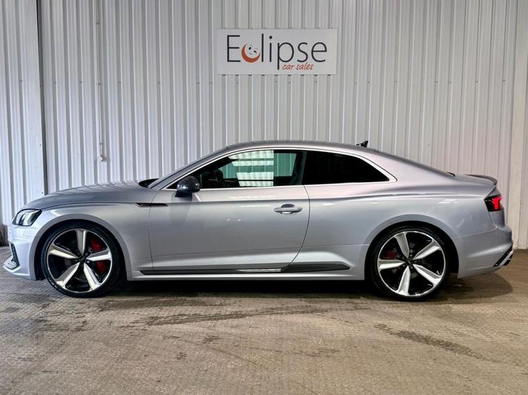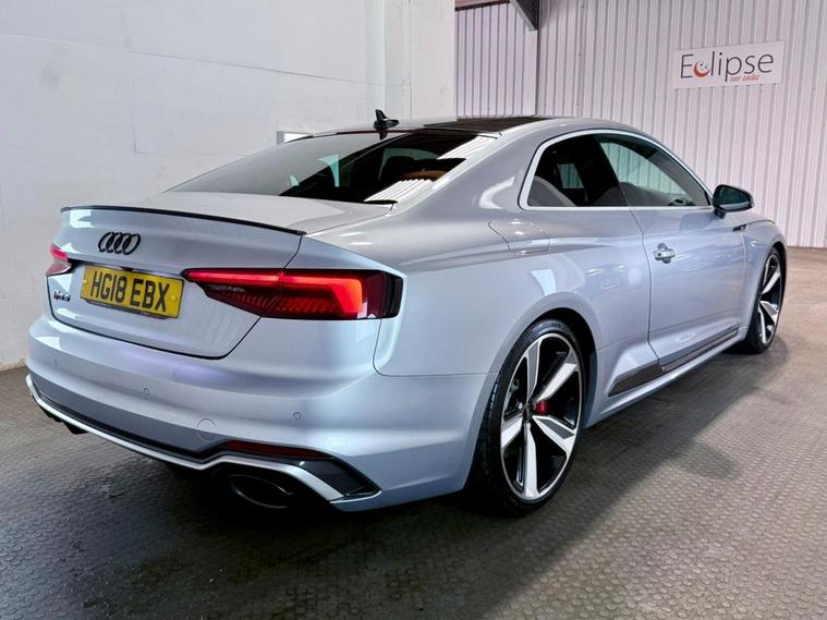 Audi RS5 2.9 V6 TFSI Carbon Edition Coupe First Registered June 2018. Finished in Floret Silver with Black Nappa Leather Super Sport Seats and Contrast Crescendo Red Stitching. Specification Includes Electric Memory Heated and Massage Leather Seats | Reverse Camera with Front and Rear Parking Sensors | Advance Key | 3 Zone Climate Control | Bang & Olufsen 3D Sound System | DAB Radio | Multifunction Steering Wheel | Cruise Control | Heated and Folding Door Mirrors. Serviced by Audi at 18215 | 34725 | 49277 | Fresh Service by Ourselves Before the Car Leaves.