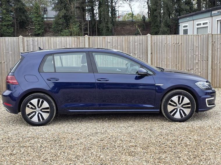 This 2019 Volkswagen e Golf presents a clear vehicle history, offering peace of mind for its next owner. As an electric vehicle, it boasts a 36 kWh battery with a maximum range of 144 miles when new. Charging is convenient, with a full charge at home using a 7kW charger taking approximately 5 hours and 20 minutes, while rapid public charging can achieve 80% capacity in just 40 minutes. This e Golf comes equipped with the Convenience Pack, featuring automatic headlights and a dusk sensor for automatic driving lights. It also includes climate control, adaptive cruise control for relaxed journeys, and front and rear parking sensors to aid manoeuvrability. The Volkswagen e Golf offers a refined electric driving experience, enhanced by its thoughtful features. The inclusion of adaptive cruise control and parking sensors makes driving and parking simpler and more comfortable, setting it apart from vehicles without these aids. Its efficient electric powertrain, combined with a respectable range and flexible charging options, makes it a practical choice for daily commuting and longer trips alike. The automatic headlights and climate control further contribute to a seamless and enjoyable drive, ensuring a pleasant environment regardless of external conditions.
