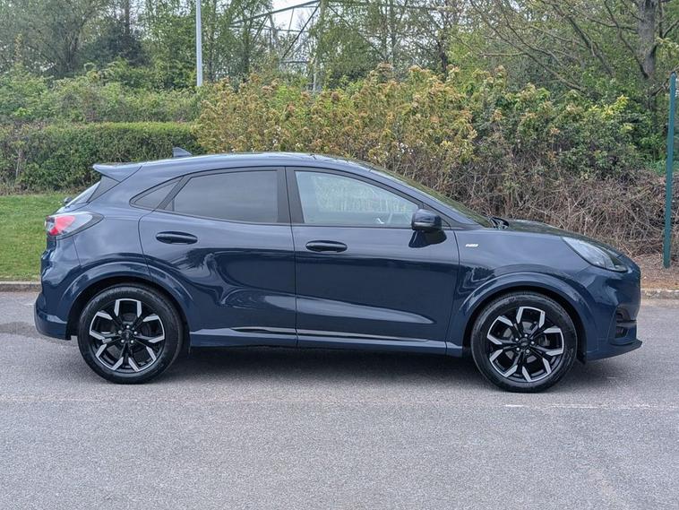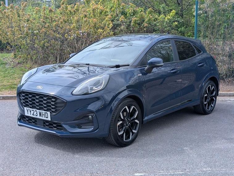 Discover this exceptional 2023 Ford Puma ST-Line X, boasting remarkably low mileage for its age at just 14112 miles, a clear vehicle history, and a Euro 6 compliant 1.0L Petrol Hybrid engine. This model offers a refined driving experience, enhanced by the B&O Premium Audio System and Ford SYNC 3 Navigation, which seamlessly integrates Android Auto, Apple CarPlay, and Bluetooth for your connectivity needs. Enjoy the convenience of rear parking sensors for easier manoeuvring, and maintain your ideal cabin environment with Electronic Air Temperature Control, all while benefiting from the integrated wireless charging pad. This Ford Puma ST-Line X stands out with its impressive fuel economy, achieving a highlight of 52 mpg, and also boasts low CO2 emissions, indicating a more efficient and environmentally conscious choice compared to many similar vehicles. The combination of its advanced technology, comfortable interior features, and economical hybrid powertrain makes this a compelling option for those seeking a modern and practical compact SUV.