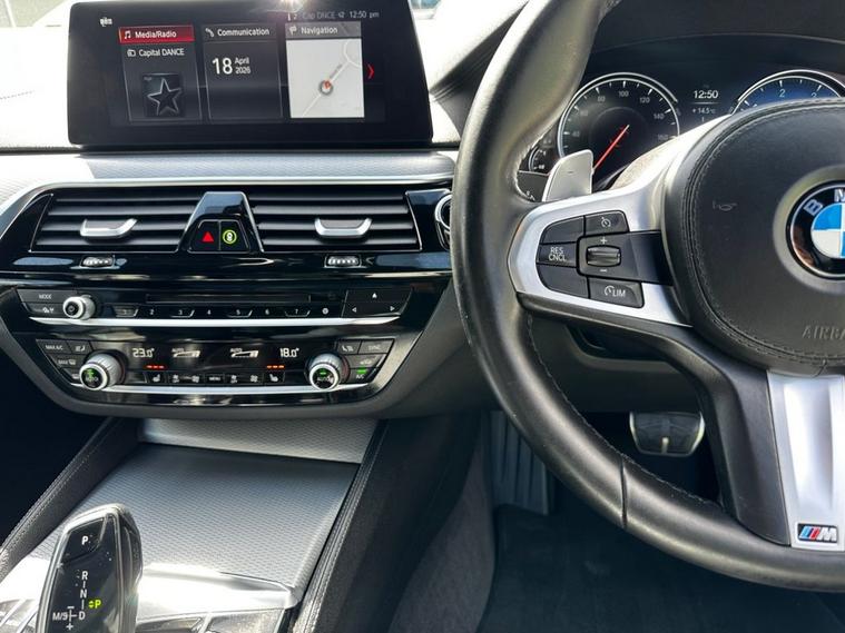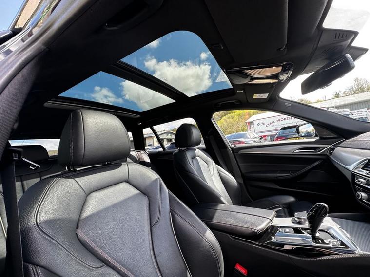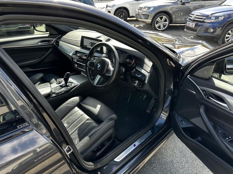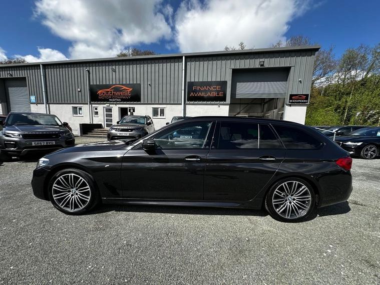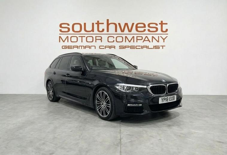 Southwest Motor Company is extremely pleased to be offering for sale this beautifully elegant, 2018 BMW 5 Series 520d M Sport Touring. Finished in the Sophisto Grey Brilliant Effect Metallic with full black Dakota leather interior and 19-inch Diamond-cut alloy wheels, its a beautiful-looking example. Very well-kept and well-presented throughout with a full BMW service history, its clear that this 5 Series has been cherished. A spacious cabin with ISO-Fix child seat anchors and a generous boot ensure this vehicle works well as a family estate. This particular example also benefits from great specification, including M Sport package plus, satellite navigation, smartphone connectivity, Bluetooth, DAB radio, multimedia connectivity, harmon Kardon surround sound, heated and electric seats, panoramic glass sunroof, dual-zone climate control, automatic wipers, automatic LED lights, electronically operated and folding wing mirrors, electric tailgate, parking sensors (front/rear), multifunction steering wheel and cruise control which ensure its a fantasitc vehicle to drive and travel in. the 2.0L deisel engine offers strong performance and great economy which is delivered through a smooth 8-speed Automtic transmission (with steering wheel Paddles). With an impressive 68 mpg achievable on a run, and this vehicle also being ULEZ COMPLIANT, ensures running costs are kept to a minimum. Supplied serviced with a long MOT and 3-month premium warranty (extendable if desired). Part-exchange welcome. All our vehicles are HPI clear. All major debit cards are accepted. Great finance packages are available to suit all customer profiles. The vehicle specification displayed may not be exact for this vehicle. Please contact us to confirm the precise specifications.