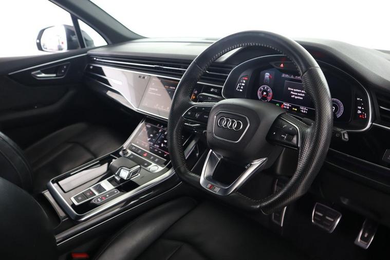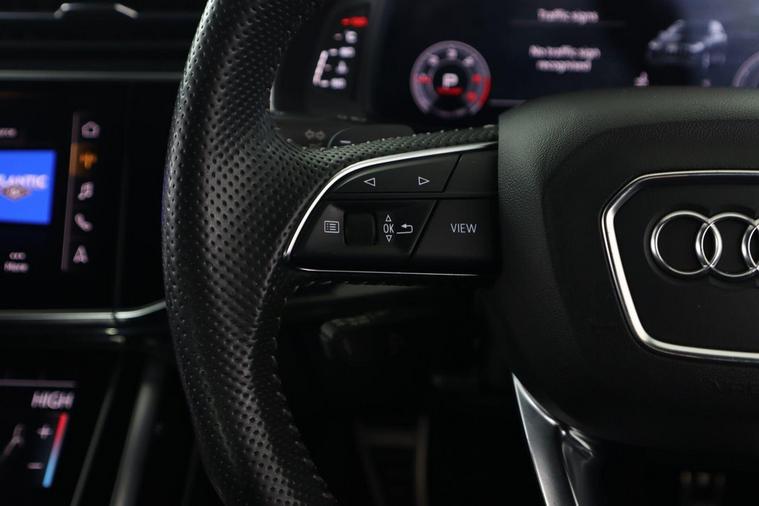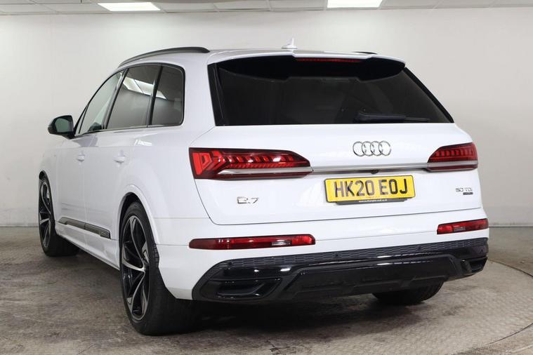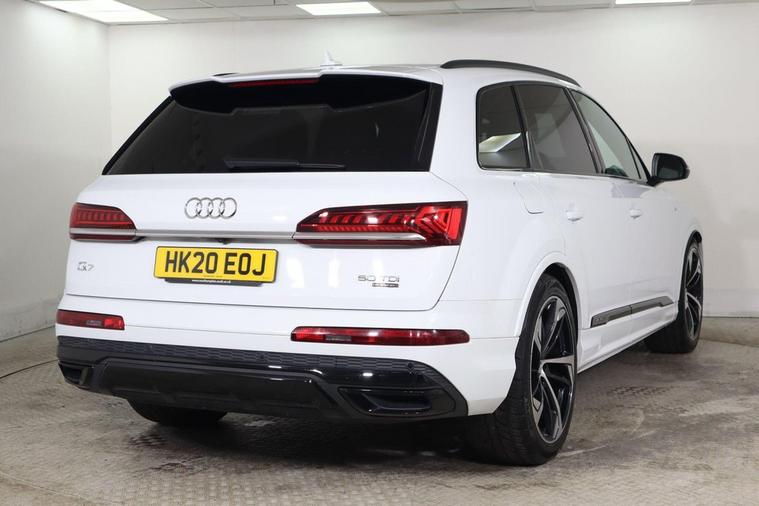 This 2020 Audi Q7 TDI V6 Black Edition boasts a full service history with its last service completed on 30th March 2026 at 70, 427 miles, and its MOT is valid until August 2026, offering peace of mind for its next owner. This impressive seven seater features a powerful 3.0L Diesel engine paired with Four Wheel Drive, ensuring excellent performance and capability. The Black Edition trim enhances its striking appearance with 22in Alloy Wheels in Anthracite Black. Inside, youll find comfort and convenience with Heated Front Seats and Deluxe Four Zone Automatic Climate Control. Stay connected and entertained with the Audi Smartphone Interface, supporting both Android Auto and Apple CarPlay, while the Rear View Camera aids in parking. This Euro 6 compliant vehicle also offers a substantial towing weight of 3500 kg and benefits from a clear vehicle history check. The Audi Q7 TDI V6 Black Edition stands out with its remarkable acceleration, achieving 0-62mph in just 6.5 seconds, demonstrating its dynamic performance. This vehicle also offers a generous boot space, making it ideal for families and those who require ample storage. Furthermore, its position within a low insurance group indicates that running costs are kept competitive, making it an attractive proposition compared to similar vehicles. With its combination of luxury, performance, and practicality, this Audi Q7 is a compelling choice for those seeking a premium SUV.