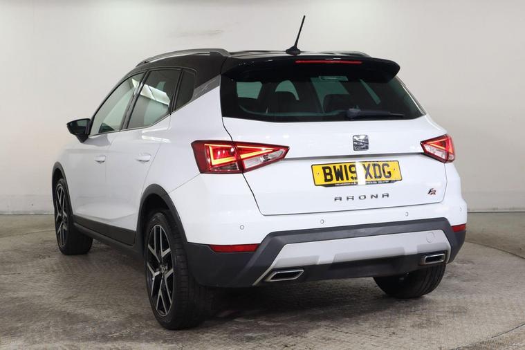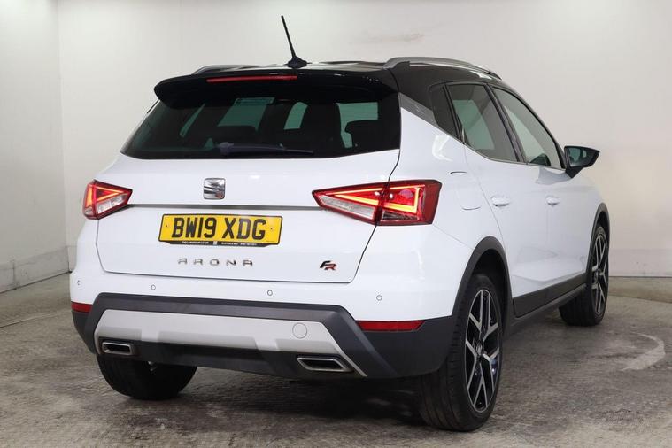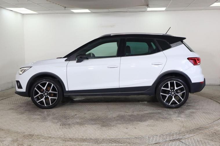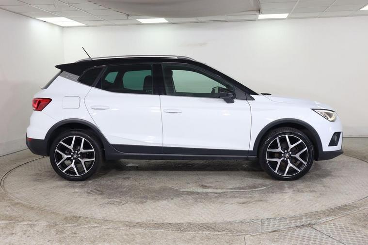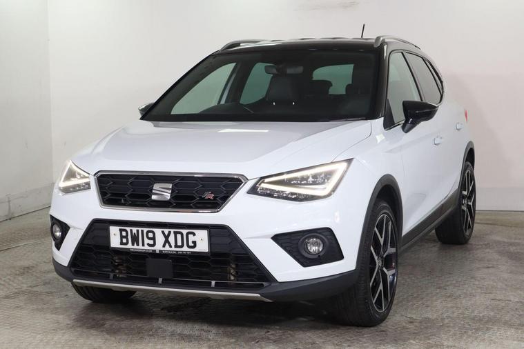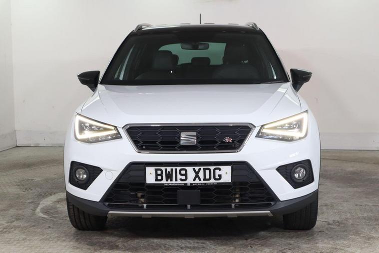 This 2019 SEAT Arona TSI FR Sport boasts a clear vehicle history check and has recently undergone its last service on 2nd April 2026 at 63, 575 miles, ensuring its excellent provenance. This stylish compact SUV is equipped with a 1.0 litre Euro 6 compliant petrol engine, offering a blend of efficiency and performance. The FR Sport trim level enhances its appeal with a sporty design and a range of convenient features, including rear parking sensors for easier manoeuvring, and a Bluetooth handsfree system for seamless connectivity. Further enhancing your driving experience, this Arona features dual zone climate control to keep all occupants comfortable, automatic headlights that adjust to changing light conditions, and a connectivity pack plus which includes wireless phone charging. With a fuel economy highlight of 46 miles per gallon and low CO2 emissions, this SEAT Arona demonstrates a commitment to efficiency that sets it apart from many other vehicles in its class.