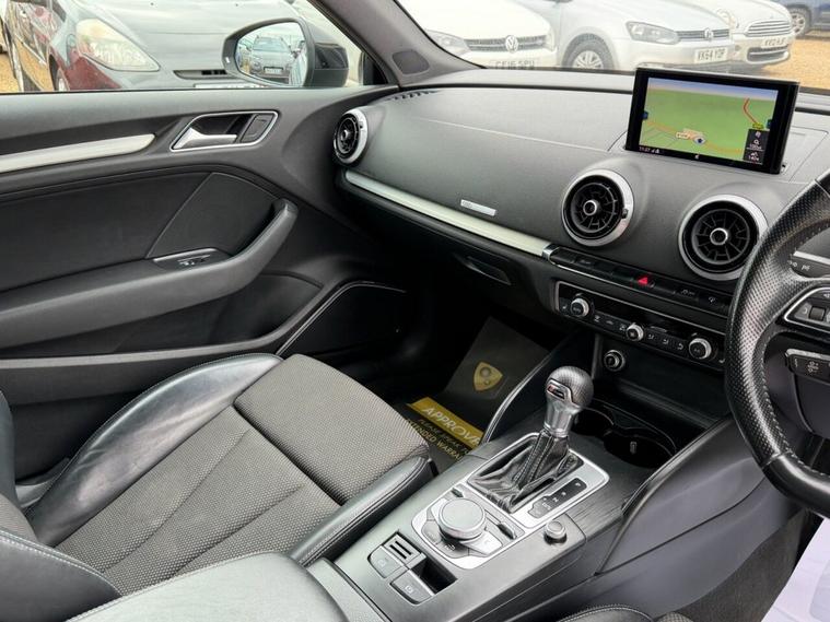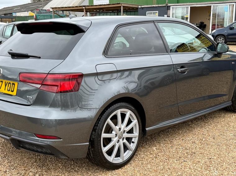 This Audi A3 TDI Black Edition from 2017 boasts a full service history and an MOT valid until August 2026, offering excellent peace of mind. This Euro 6 compliant model features a powerful 2.0L diesel engine and has had only two owners, with a clear vehicle history check. The Black Edition trim comes with a Comfort and Sound Package, enhancing your driving experience with a luxury branded sound system, front and rear parking sensors, and heated front seats. Youll also appreciate the dual-zone electronic climate control and automatic headlights activated by light and rain sensors. The performance of this A3 is noteworthy, achieving 0-60mph in just 8.0 seconds, demonstrating its responsive acceleration. These highlights, combined with its comprehensive service record and desirable Black Edition specification, position this Audi A3 as a superior choice compared to other vehicles in its class.