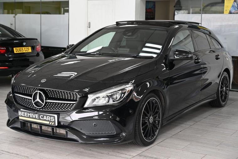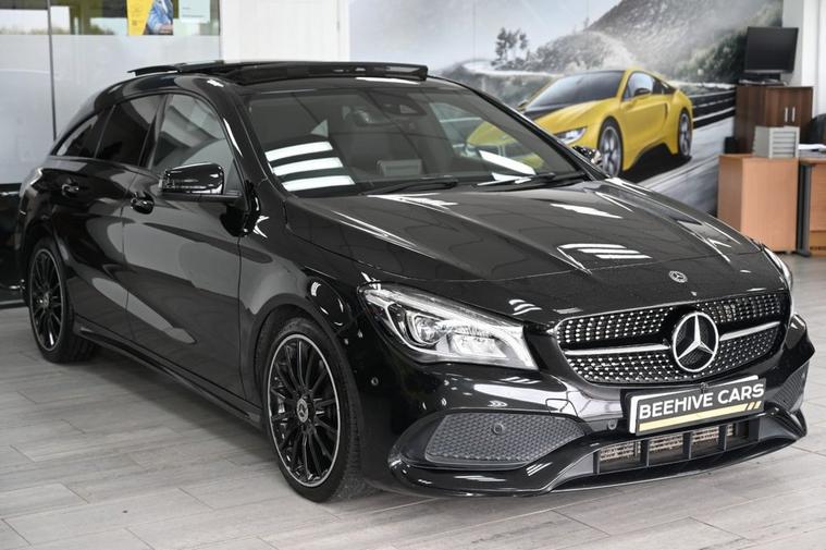 DRIVE AWAY TODAY OR HOME DELIVERY TO YOUR DOORSTEP FINANCE & PART EXCHANGE ARRANGED ONLINE** 7 DAY MONEY BACK GUARANTEE** Lovely car Mercedes Cla220d amg line night edition plus shooting brake in metallic black with service history sat nav cd radio bluetooth media usb harman kardon surround sound panoramic glass roof reverse camera half leather seats with armrest heated seats electric memory seats electric folding door mirrors front and rear parking aid sensors xenon lights flat bottom steering wheel with f1 style paddleshifts eco comfort sport individual dynamic driving mode push button start stop alloys privacy