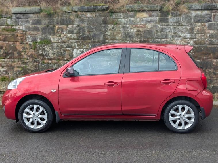 Stunning low mileage low engine 2015 Nissan Micra Acenta presented in metallic deep dark red with contrasting silver alloy wheels. This Micra is truly a beautiful example inside and out benefiting with practically full service history and MOTd until March 2027 A perfect small family car or firs car in a really wonderful colour