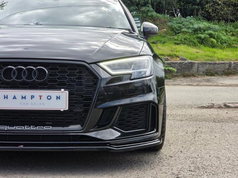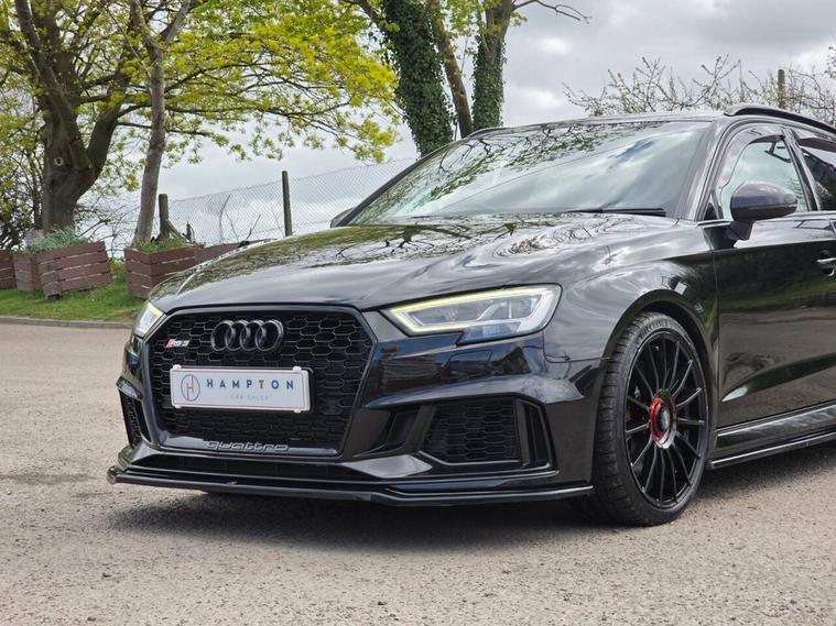 Presented by Hampton Car Sales, a trusted name with over 250 verified five-star Google reviews, this Audi RS3 2.5 TFSI GPF Sportback delivers an exceptional blend of everyday usability and high-performance engineering. Finished in the striking Panther Black Crystal effect paint, this example has covered just 44, 544 miles and comes complete with a full service history, reflecting the care and attention it has received. Powered by the iconic 2.5-litre five-cylinder engine producing 400 ps, paired with the lightning-fast S Tronic gearbox and Audis renowned quattro all-wheel drive system, the RS3 offers relentless acceleration alongside superb grip and confidence in all conditions. As standard, this model boasts an impressive factory specification including Audi Virtual Cockpit, MMI Navigation Plus, LED headlights, sports suspension, drive select modes, and a premium interior that perfectly balances performance with comfort and technology. This particular vehicle is enhanced further with the highly desirable Comfort and Sound Package, which elevates the driving experience with a Bang & Olufsen premium sound system for crystal-clear audio, along with keyless entry, rear parking camera, and advanced parking assistance features that make daily driving effortless. In addition, this RS3 benefits from tasteful modifications including a full Maxton Design styling kit that enhances its aggressive stance, a stage 2 tune by MRC delivering even sharper performance and increased power, and a CTS turbo air intake which improves airflow and engine response, all combining to create a car that feels as exciting as it looks. It also sits on striking O.Z Racing multispoke alloy wheels wrapped in premium Michelin tyres, further enhancing both its visual appeal and road-holding capability. Finance can be arranged to suit your needs and part exchanges are always welcomed.