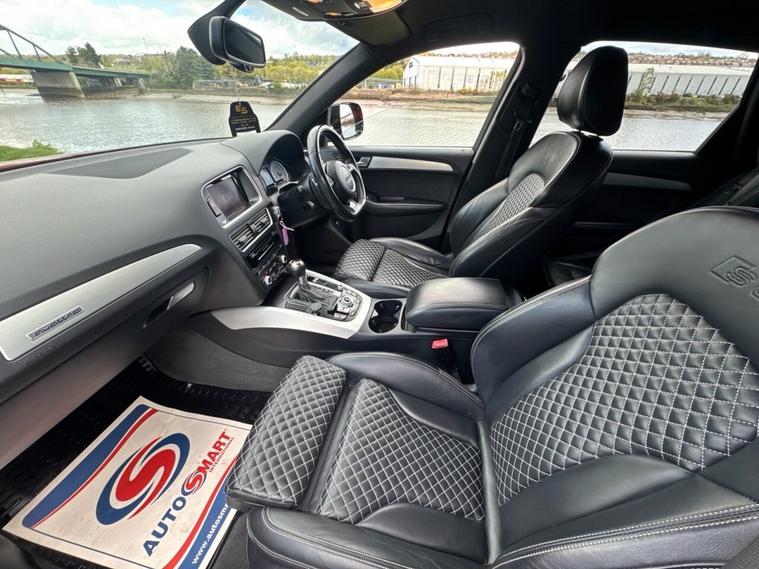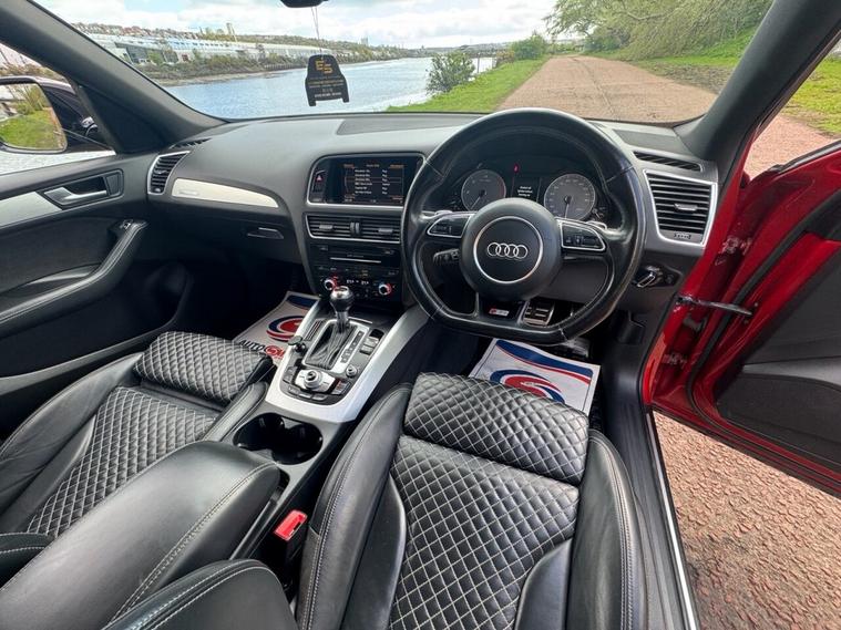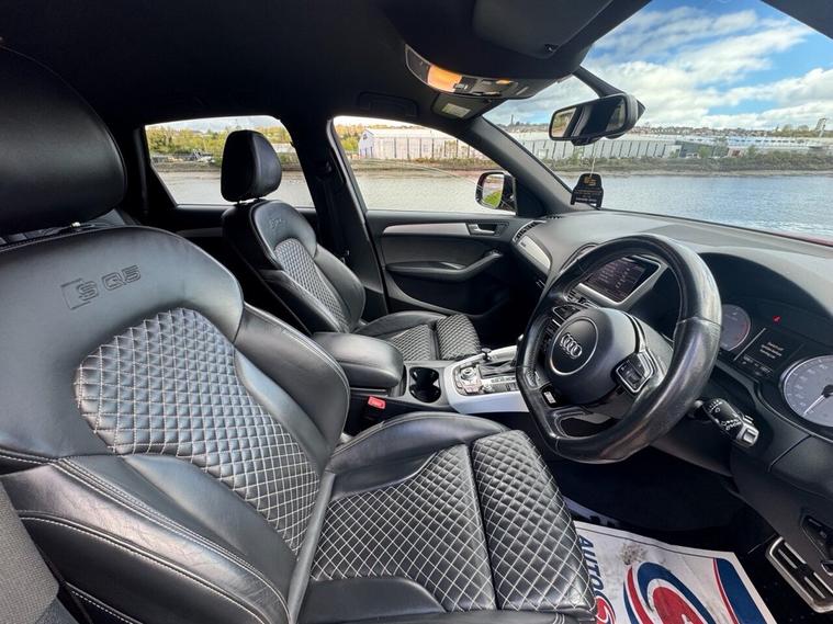 STUNNING AUDI SQ5 IN ORANGE WITH 21 ALLOY WHEELS, ROOF RAILS, PRIVACY GLASS, BLACK WINDOW SURROUNDS, MIRROR CAPS, POWER FOLDING MIRRORS THIS CAR IS IMMACULATE INSIDE AND OUT AND COMES WITH SOME LOVELY SPEC INCLUDING ELECTRIC TAILGATE, FULL BLACK LEATHER INTERIOR, HEATED MEMORY FRONT SEATS, CRUISE, AUTO LIGHTS, FRONT + REAR SENSORS, DUAL AIR CON, SAT NAV, DAB, BLUETOOTH AND LOTS MORE. THIS CAR COMES WITH A MASSIVE SERVICE HISTORY WE WILL ALSO PROVIDE YOU WITH A FRESH SERVICE, MOT AND WARRANTY.