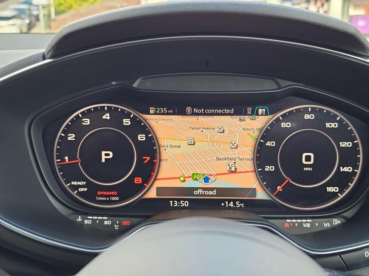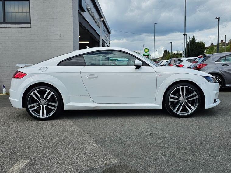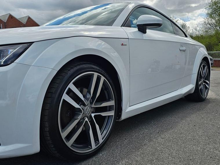 1 OWNER FROM NEW Stunning condition AUDI TT 1.8 S-Line AUTO Petrol in Summit white complimented by 19inch alloy wheels. Comprehensive service history, last serviced at 40, 635 miles and MOT Dec 2026. Spec includes sat nav, Bluetooth, Cruise control, Multi-function steering with paddle shift gears, trip computer, rear parking sensors, Digital dash, push button start, half leather sports interior and much more. Call 01138032273 or visit dealer's website