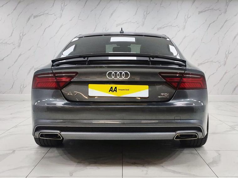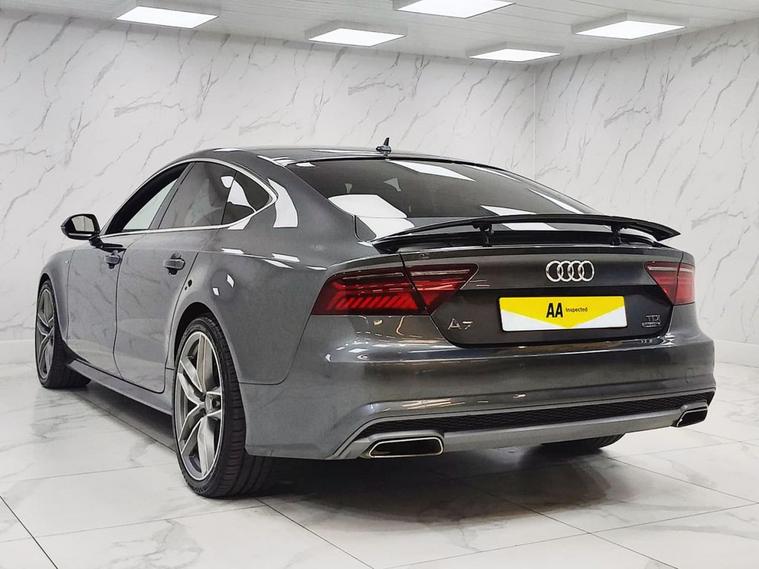 This Audi A7 TDI V6 Black Edition from 2017 boasts a clear vehicle history check and an MOT valid until October 2026, offering peace of mind. This striking example features a powerful 3.0L Diesel engine paired with Four Wheel Drive for confident handling, and meets Euro 6 emissions standards. Inside, youll find luxurious heated front seats, deluxe 4-zone automatic climate control for personalised comfort, and a Bluetooth interface for seamless connectivity. The advanced Audi Matrix LED headlights provide exceptional visibility, while the electrically adjustable front seats with 4-way electric lumbar support and memory function ensure an ideal driving position. The performance of this A7 is truly impressive, accelerating from 0-60mph in just 5.5 seconds. This swift acceleration demonstrates how this vehicle offers a more dynamic driving experience compared to many others in its class. The Black Edition trim further enhances its appeal, combining sophisticated styling with the robust engineering Audi is renowned for.
