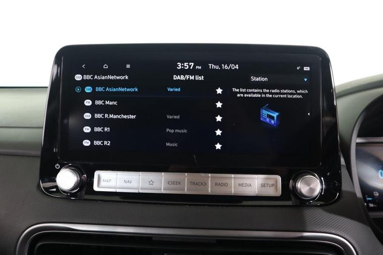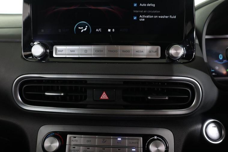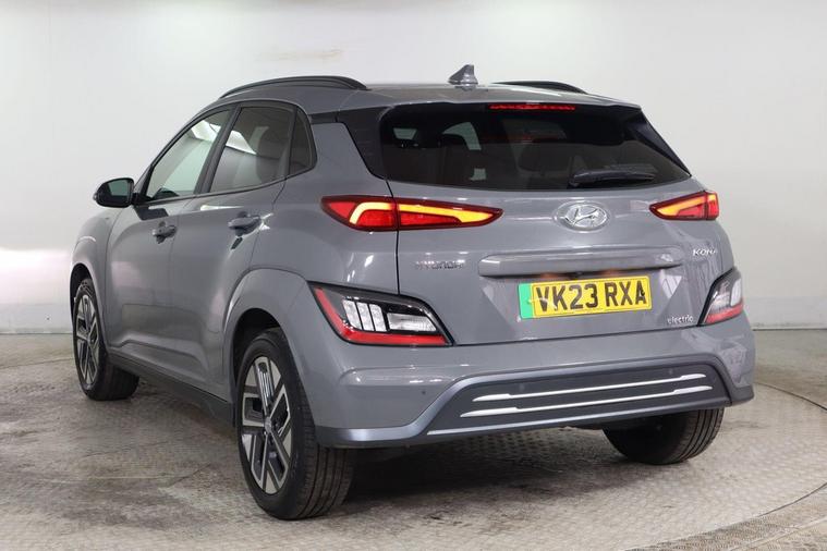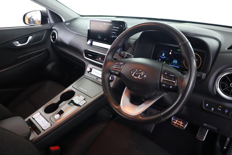 This 2023 Hyundai KONA Premium Electric is a superb example, having had only one owner since new. This stylish electric SUV boasts a substantial 68 kWh battery, offering an impressive maximum range of 300 miles when new. Driving is made more comfortable and convenient with features such as Climate Control with an Automatic De-Fog System for the front windscreen, and Automatic Headlights that activate with a dusk sensor. For enhanced visibility and safety, it is equipped with Full LED Headlights. The KONA Premium Electric also makes parking easier with its Rear Camera and Guidance System. Stay connected on the go with seamless Phone Connection for Android Auto. Charging is efficient, with a full charge at home using a 7kW charger taking approximately 10 hours and 16 minutes, and a rapid charge from empty to 80% achievable in just 53 minutes at a public charging station. The 300 mile range highlight indicates this vehicle offers excellent long distance capability compared to many other electric cars.