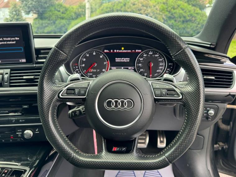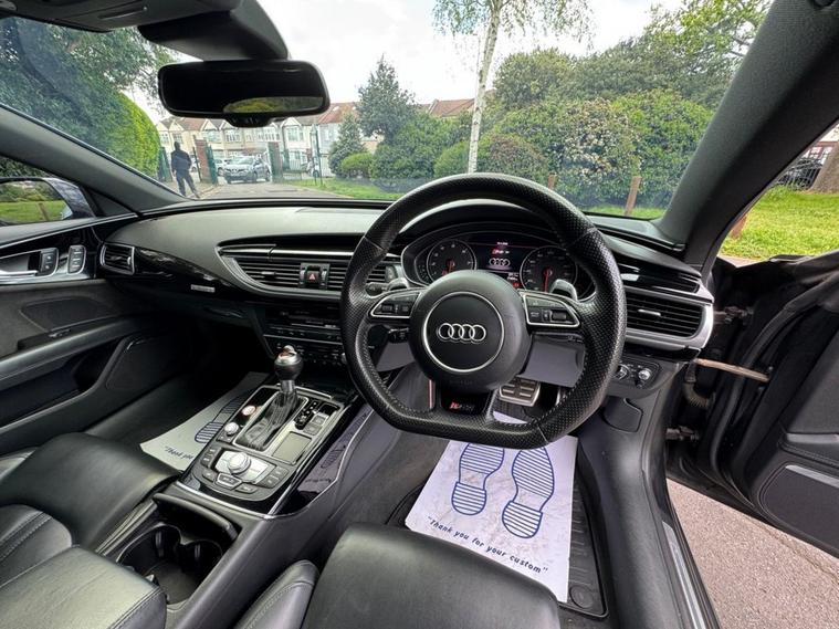 Audi RS7 4.0 TFSI V8 Performance Tiptronic quattro 605 PS An exceptional example of the stunning Audi RS7 Performance, finished in black and offering supercar performance with everyday practicality. Powered by the incredible 4.0 TFSI V8 engine producing 605 PS, paired with a smooth Tiptronic automatic gearbox and Audis renowned quattro all-wheel drive system, this RS7 delivers breathtaking acceleration and effortless performance. This vehicle has covered just 31, 000 miles, which is exceptionally low for its age, and has been meticulously maintained. It comes with warranted mileage, will be supplied with a new MOT, a fresh service, and includes a comprehensive warranty for complete peace of mind. Key Features: 4.0 TFSI V8 Performance Engine 605 PS Tiptronic Automatic Gearbox quattro All-Wheel Drive Full Black Leather Interior RS Sports Seats Satellite Navigation Reverse Camera & Front and Rear Parking Sensors Heated Seats Electric Memory Seats Bose Sound System Adaptive Cruise Control Digital Display Keyless Entry & Start Alloy Wheels The RS7 combines aggressive styling, luxury, and astonishing performance, capable of 060 mph in under 4 seconds while still offering the comfort and practicality of a five-door Sportback. All our vehicles are thoroughly inspected, HPI clear, and come with warranted mileage. We pride ourselves on offering high-quality vehicles at competitive prices. Due to high demand, we recommend securing the vehicle with a small refundable deposit or arranging a viewing as soon as possible to avoid disappointment. Wise Auto Ltd 769 High Road, Ilford, IG3 8RW 02030184515 Nationwide delivery available Part exchange welcome | Finance available | Open 7 days a week