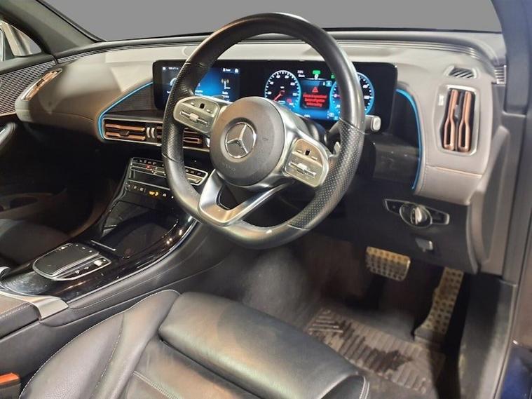 This 2021 Mercedes Benz EQC 400 AMG Line (Premium Plus) boasts a clear vehicle history and has had only one owner since new, with its MOT valid until January 2027. This electric four wheel drive SUV features a substantial 88 kWh battery, offering a maximum range of 244 miles when new. Its full service history provides peace of mind, and it comes equipped with impressive features such as MULTIBEAM LED Headlights, Blind Spot Assist, Wireless Smartphone Charging, the KEYLESS-GO Comfort Package, and a premium Burmester Surround Sound System. Experience exhilarating performance with the EQCs rapid 0-60mph acceleration in just 5.1 seconds, a testament to its electric power. Charging is convenient, with a full charge at home taking approximately 12 hours and 13 minutes using a 7kW charger, while rapid public charging can achieve 80% capacity in as little as 45 minutes from empty. This model also offers generous boot space, making it a practical choice for everyday use and longer journeys. The combination of its advanced technology, impressive performance, and comprehensive provenance makes this Mercedes Benz EQC a standout option.