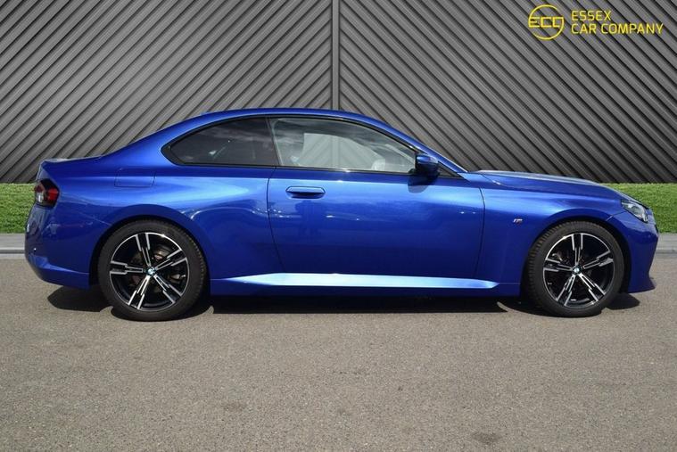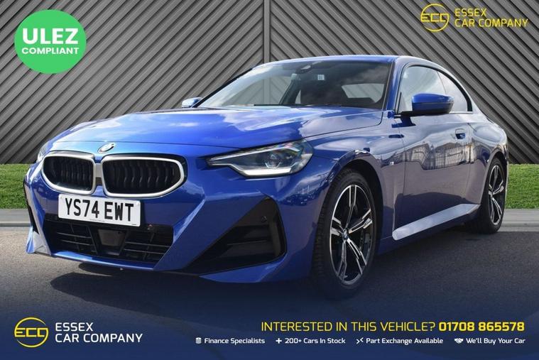 This 2024 BMW 2 Series 220i M Sport is a standout example, having had only one owner from new and boasting exceptionally low mileage of just 9246 miles. This Euro 6 compliant model features a 2.0L petrol engine and comes with an MOT valid until November 2027, offering peace of mind for years to come. Inside, youll find a wealth of premium features designed for comfort and convenience, including Harman Kardon Surround Audio, heated front seats, and automatic air conditioning. The M Sport trim enhances the driving experience, while the Parking Assistant, complete with front and rear sensors and a rear camera, makes manoeuvring effortless. Connectivity is seamless thanks to the BMW Connected Package Professional, offering Android Auto and Apple CarPlay integration. This BMW 2 Series 220i M Sport offers several advantages over similar vehicles. Its impressive fuel economy of 44 mpg means more miles for your money, and its low CO2 emissions contribute to a more environmentally friendly drive. Furthermore, its low insurance group rating can help keep running costs down. These highlights, combined with its single owner status and minimal mileage, make this a particularly attractive and well maintained vehicle.