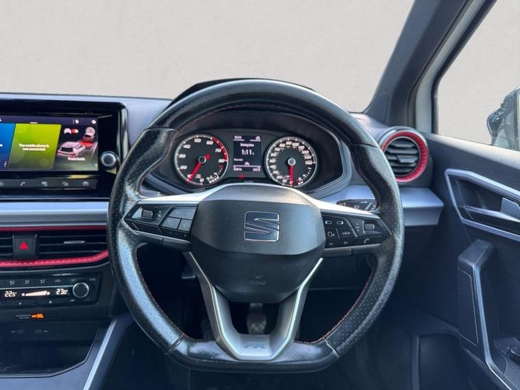 Introducing the SEAT Arona a sporty, compact SUV that blends dynamic FR styling, efficient performance, and everyday practicality. Powered by a 1.0 TSI petrol engine producing 110 ps and paired with a smooth manual gearbox, it delivers a lively yet economical driving experience, perfect for both urban journeys and longer motorway trips. The FR Edition enhances the Aronas sporty character with 18-inch machined alloy wheels in black and grey, twin exhaust pipes, contrast roof styling, LED headlights with automatic function, LED daytime running lights, LED rear taillights, dark tinted rear windows, roof rails, and FR-specific exterior detailing. Its bold design and compact SUV stance give it a confident and athletic road presence. Inside, the cabin offers a modern, driver-focused environment with a perforated flat-bottom leather steering wheel with red stitching and FR logo, leather gear knob and handbrake, black interior roof lining, ambient interior lighting, and illuminated air vents. Comfort is enhanced with front comfort seats, height-adjustable seating, dual-zone climate control, and a double boot floor for added practicality. Technology is well equipped with an 8.25-inch touchscreen infotainment system, Full Link smartphone integration with Apple CarPlay and Android Auto, Bluetooth audio streaming, wireless phone charging, SEAT Drive Profile, and SEAT Connect services for safety, service, and remote access functions. A digital-style analogue cockpit, six-speaker audio system, and multiple USB connectivity points ensure a connected and enjoyable driving experience. Safety and driver assistance systems are comprehensive, including lane keeping assist, front assist with emergency braking, tiredness recognition system, cruise control with speed limiter, rear parking sensors, hill hold control, ESC, ABS, multiple airbags including curtain protection, ISOFIX child seat mounting points, tyre pressure monitoring system, and rear seatbelt reminders for added peace of mind. This vehicle benefits from a full service history, ensuring it has been meticulously maintained throughout its life. For added peace of mind, if the MOT is under six months, well ensure a fresh MOT is completed before sale. The vehicle also comes with a standard three-month back-to-base warranty, with the option to extend it to a nationwide warranty for added reassurance. Nationwide delivery is also available. Finance Available Special 9.9% APR Offer We offer in-house finance with zero deposit options and flexible monthly payments. Apply in minutes and drive away the same day! For more details or to arrange a viewing, contact 02030183551 or email enquiries dealer's website
