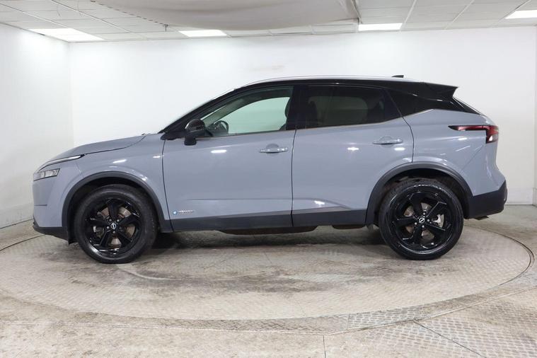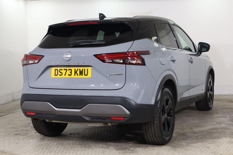 This 2023 Nissan Qashqai h e-POWER Kuro Edition is a superb example, having had only one owner since new. This stylish Kuro Edition variant boasts a 1.5 litre petrol hybrid engine, meeting Euro 6 emissions standards. It comes equipped with a suite of advanced driver aids, including Blind Spot Warning with Blind Spot Assistance, Rear Parking Sensors with Parking Assistance, and a Rear View Camera for effortless manoeuvring. Inside, youll find the convenience of a Wireless Phone Charger and the expansive Glass Roof Pack, featuring a fixed panoramic sunroof. Experience impressive performance with this Qashqai, accelerating from 0 to 62 miles per hour in just 7.9 seconds. Its fuel economy is a standout feature, achieving a highlight of 54 miles per gallon, which indicates it is more economical than many similar vehicles. Furthermore, this model offers generous boot space, making it practical for all your needs, and its low CO2 emissions are also a key advantage, showing it is a more environmentally friendly choice compared to other cars in its class.