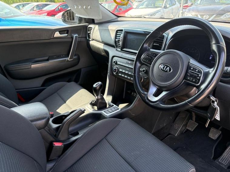 Kia Sportage GDI 2 in metallic black, has service history with 5 services. Comes with sat navigation, 17 alloy wheels, air conditioning, electric windows in the front and rear, electric mirrors, rear parking sensors, reversing camera, cruise control, auto lights and wipers, rear privacy glass, lane assist, stop/start engine, its a 6 speed, has bluetooth, apple car play, voice command, a touchscreen dab radio, aux port, usb, multifunction steering wheel and 2 remote keys. THE CAR WILL HAVE A SERVICE AND 12 MONTHS MOT, WITH ALL ADVISORIES ADDRESSED / PART EXCHANGE IS ALWAYS WELCOME / FREE 12 MONTH AA ROADSIDE RECOVERY INCLUDED / FINANCE IS AVAILABLE VIA OUR WEBSITE LINK / THE CAR HAS BEEN HPI AND MILEAGE CHECKED, ALL OK / WE ARE A FAMILY RUN BUSINESS AND HAVE BEEN TRADING FOR 35 YEARS, WE OFFER DELIVERY IN MAINLAND UK (Please ask for details), WE ARE HERE TO HELP YOU! PLEASE CONTACT US WITH ANY QUESTIONS.