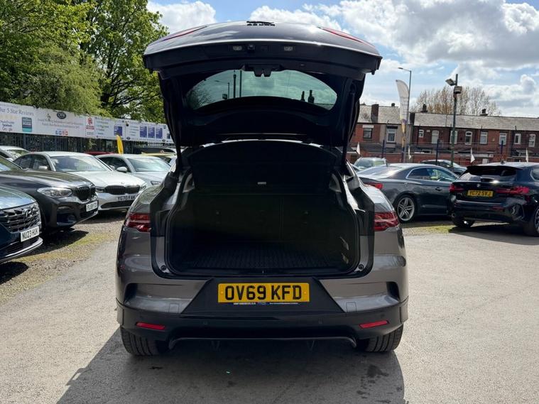 This 2019 Jaguar I-PACE 400 SE offers an impressive 292 miles of electric range from its 90 kWh battery, ensuring you can travel further on a single charge. This Four Wheel Drive electric vehicle comes with a 6 month warranty and a 12 month MOT provided on purchase, giving you peace of mind. Inside, youll find a host of premium features including Premium LED Headlights with Signature DRL, a Meridian Sound System for an immersive audio experience, and seamless Bluetooth Connectivity. The Drive Pack enhances your journey with Adaptive Cruise Control and Blind Spot Assistance, while the Rear Camera aids with parking. Experience exhilarating performance with the Jaguar I-PACE, capable of accelerating from 0-60mph in just 4.5 seconds, demonstrating its superior responsiveness compared to other vehicles in its class. Recharging is convenient, with a full charge taking approximately 12 hours and 36 minutes at home using a 7kW charger, and a rapid 50 minutes to reach 80% charge from empty at a public charging station. This combination of long range, rapid charging, and exceptional performance makes the I-PACE a compelling choice for electric vehicle enthusiasts.