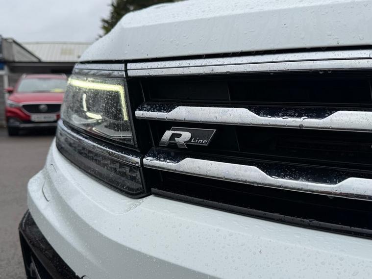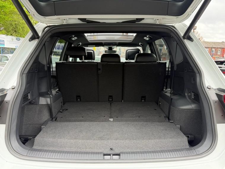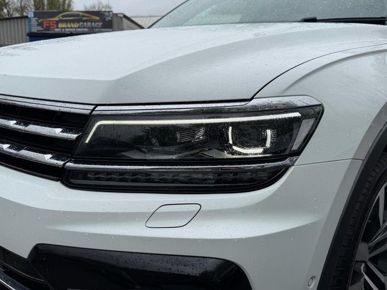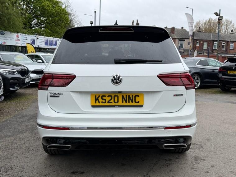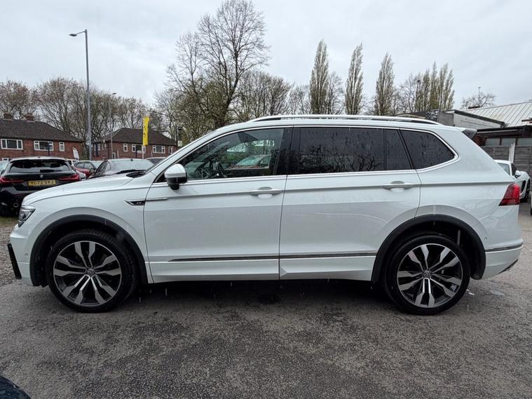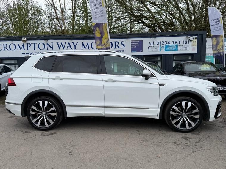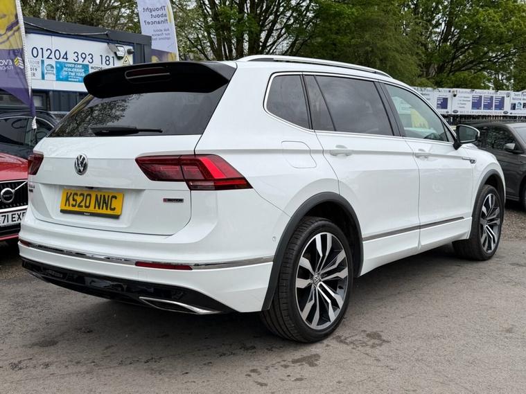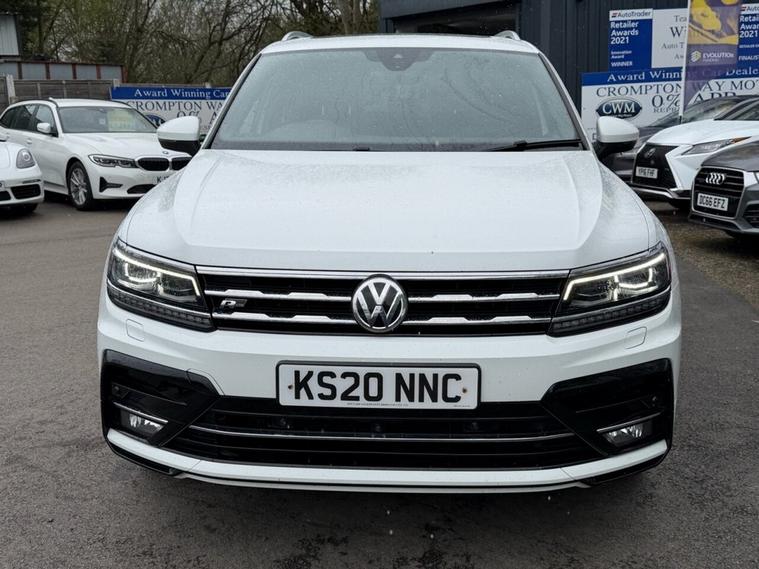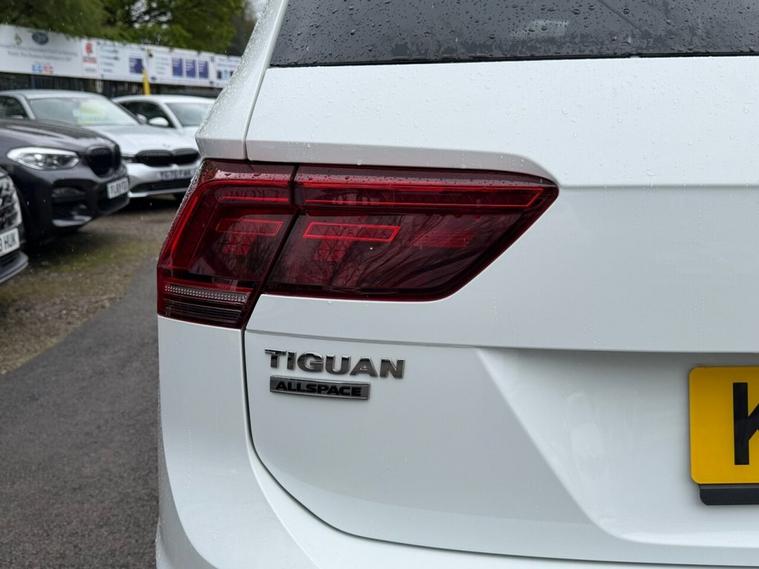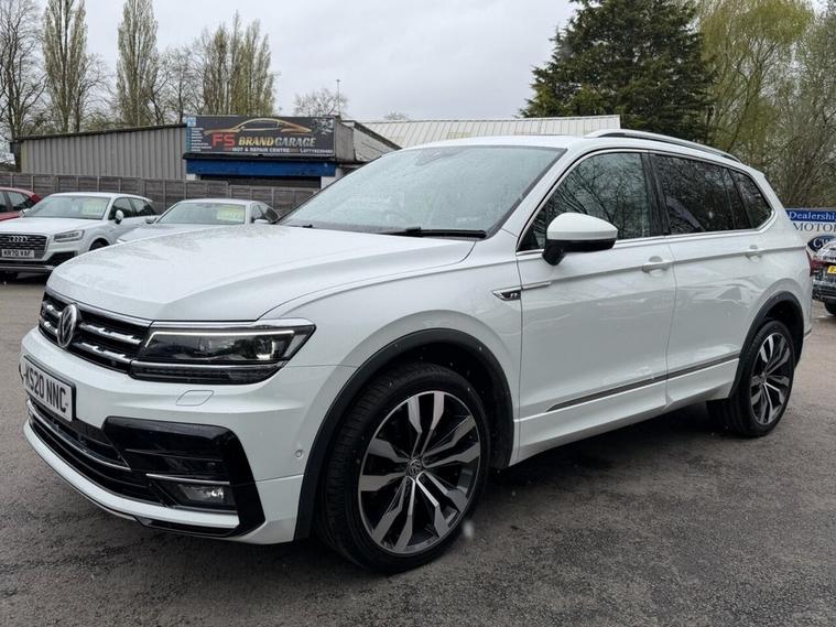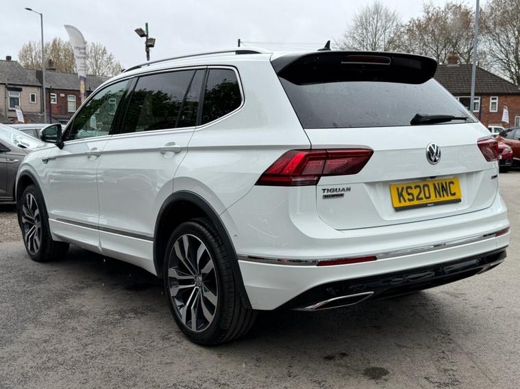 This 2020 Volkswagen Tiguan Allspace TDI R-Line Tech boasts a clear vehicle history, offering you peace of mind. This four wheel drive, seven seat SUV is powered by an efficient 2.0 litre diesel engine and meets Euro 6 emission standards. Inside, youll find luxurious Vienna Leather upholstery in Black Crystal Grey, complemented by the Discover Navigation Infotainment System with Bluetooth connectivity. The R-Line Tech trim also includes a Dusk Sensor for automatic headlights, front and rear parking sensors with parking assistance, and advanced Dynamic Light Assist for LED headlights. Experience impressive performance with an acceleration of 0-60mph in just 8.2 seconds, demonstrating its capability compared to other vehicles in its class. This Tiguan Allspace is also equipped to handle your towing needs with a maximum towing weight of 2500 kg. For added reassurance, the vehicle comes with a 6 month warranty.