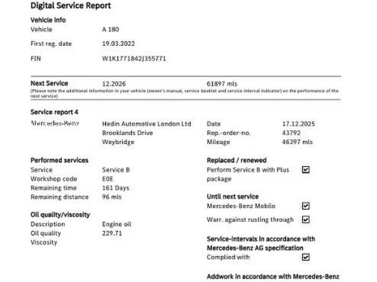 This 2022 Mercedes Benz A Class A180 AMG Line Edition (Executive) has been cherished by just one owner, offering a superb example of this popular hatchback. Powered by an efficient 1.3 litre petrol engine, this Euro 6 compliant vehicle boasts an impressive fuel economy of 47 miles per gallon. It comes equipped with striking LED High Performance Headlamps with integrated LED Daytime Running Lights, complemented by Headlamp Assist for automatic activation. Inside, youll find the comfort of Heated Front Seats and seamless connectivity through dual Bluetooth interfaces and Smartphone Integration, including Android Auto and Apple CarPlay. This A Class stands out with its low insurance group and low CO2 emissions, indicating a more economical and cost effective ownership experience compared to many similar vehicles. The MOT is valid until March 2027, providing excellent peace of mind. The AMG Line Edition trim adds a touch of sporty refinement, making this Mercedes Benz A Class a compelling choice for those seeking style, efficiency, and advanced features.