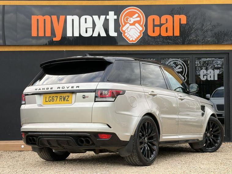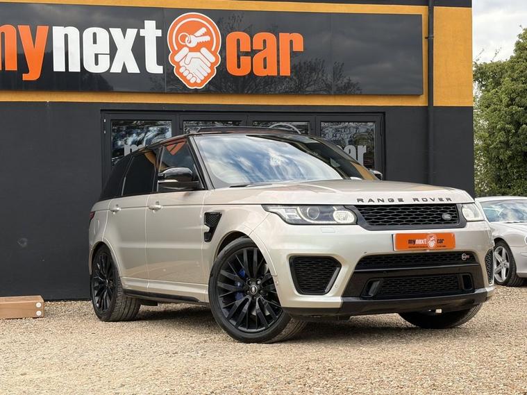RANGE ROVER SPORT SVR 5.0 V8 + BIG SPECIFICATION + MERIDIAN SIGNATURE SOUND + SVO PREMIUM PAINT PALETTE (RIO GOLD) + BLACK INTERIOR WITH SVR EMBOSSED BUCKET SEATS FRONT & REAR + HEATED SEATS + TILT & SLIDE PANORAMIC ROOF + BLIND SPOT ASSIST + REAR HEATED SEATS + LANE ASSIST + CRUISE CONTROL + ELECTRIC TAILGATE + REVERSE CAMERA + HEATED STEERING WHEEL + ELECTRIC MEMORY SEATS + ELECTRIC STEERING COLUMN + ULEZ COMPLIANT + HEATED WINDSCREEN + 4 ZONE CLIMATE CONTROL + BLUETOOTH + DAB + MANY MORE EXTRAS 12 MONTHS + 6 MONTHS WARRANTY + PART EXCHANGE WELCOME + NATIONWIDE DELIVERY AVAILABLE