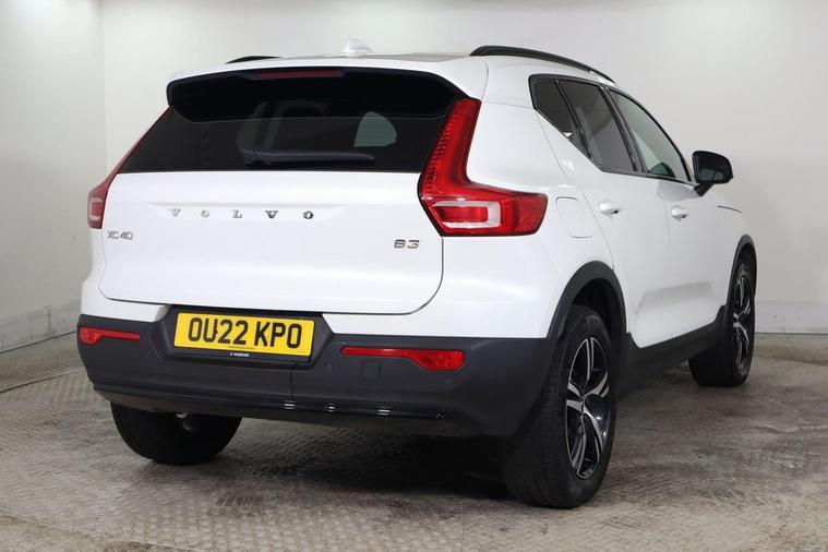 This 2022 Volvo XC40 B3 Plus Dark is presented with a clear vehicle history check and has had only one owner. It features a 2.0L Petrol Hybrid engine, meeting Euro 6 emission standards. The last service was completed at 46, 447 miles on 16th April 2026. Notable features include heated front seats, a power drivers seat with memory for both the seat and exterior mirrors, and heated rear seats in the outer positions. For comfort, it offers 2 zone electronic climate control with a CleanZone air quality system and pollen filter, alongside wireless inductive mobile phone charging. The XC40 B3 Plus Dark offers impressive performance, accelerating from 0 to 60mph in just 8.3 seconds, demonstrating its capability. Its large boot space provides practical versatility for everyday needs and longer journeys. These highlights, combined with its comprehensive feature set and excellent provenance, position this Volvo XC40 as a superior choice compared to other vehicles in its class.