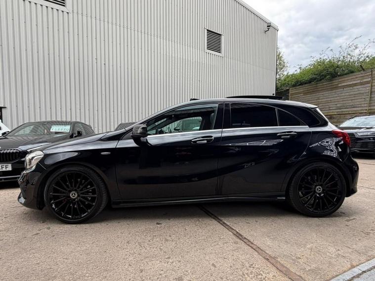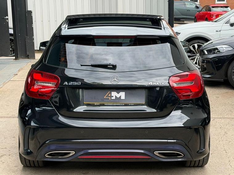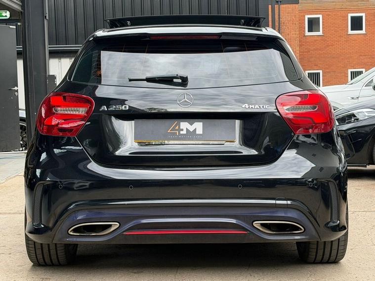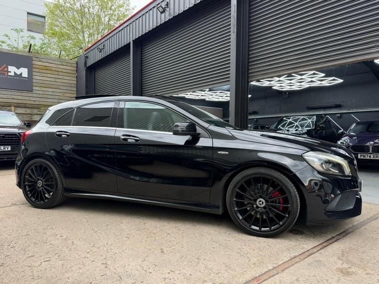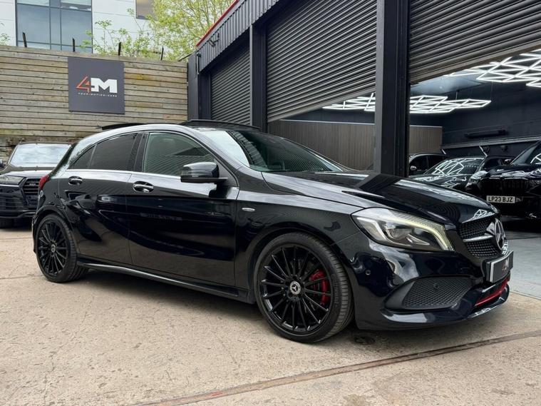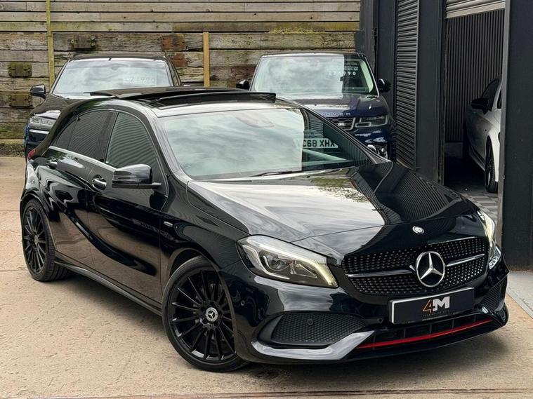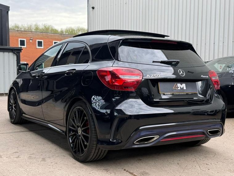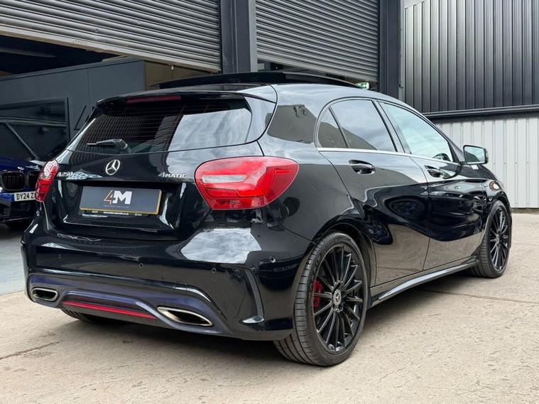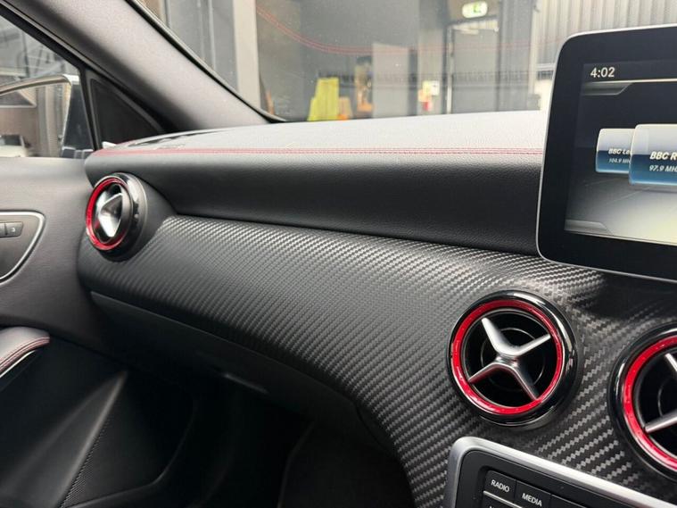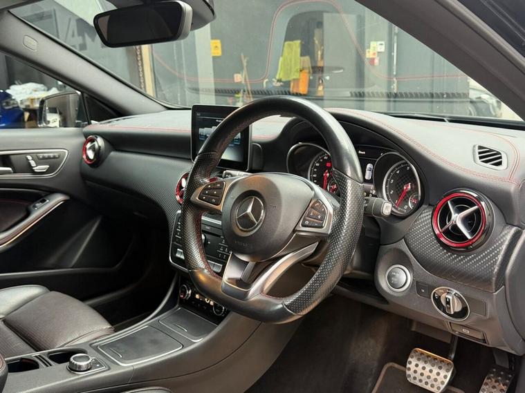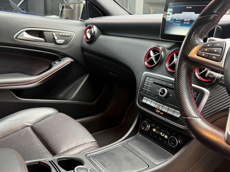 This 2016 Mercedes Benz A Class A250 AMG boasts a full service history and a clear vehicle history check, offering peace of mind alongside its premium features. This Euro 6 compliant, four wheel drive model is powered by a 2.0 litre petrol engine and comes with a 6 month warranty. Notable features include striking 19 inch AMG multi-spoke alloy wheels finished in black with a high sheen, and the AMG Exclusive Package which presents a luxurious black and red perforated leather interior with contrast stitching. Experience the dynamic performance of this A250 AMG, capable of accelerating from 0 to 60mph in just 6.3 seconds, a testament to its superior engineering compared to other vehicles in its class. Enhancing your driving experience are the LED High Performance Headlights with integrated daytime running lights and high beam assist, alongside the Parking Pilot system with front and rear sensors for effortless manoeuvring. The THERMOTRONIC luxury automatic climate control, offering two zones with a display, ensures optimal comfort for all occupants.