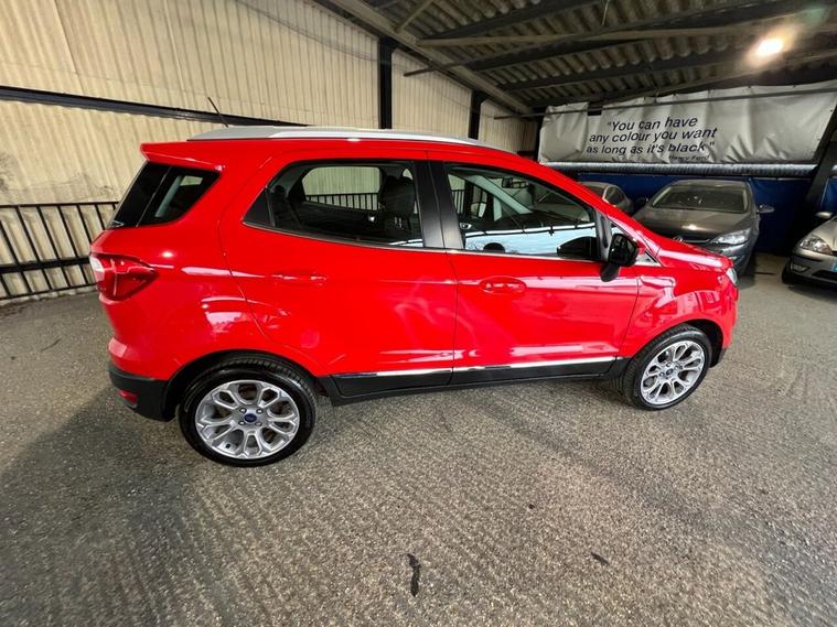 2018 Ford EcoSport 1.0T EcoBoost Titanium SUV | Automatic | Low Mileage | Excellent Condition We are pleased to offer this well-maintained 2018 Ford EcoSport Titanium, a stylish and practical compact SUV thats perfect for both city driving and longer journeys. With very low mileage and a full history from a trusted family-run business, this vehicle has been cared for to a high standard and is ready for its next owner. Powered by the award-winning 1.0L EcoBoost petrol engine producing 125 ps, this model delivers an excellent balance of performance and fuel efficiency. The smooth automatic gearbox ensures a relaxed and comfortable driving experience, making it ideal for everyday use. Key Features Include: Titanium trim high specification throughout Automatic transmission Euro 6 compliant (ULEZ friendly) Start/Stop technology (s/s) Satellite navigation system Rear parking sensors & camera Keyless entry & start Cruise control with speed limiter Climate control air conditioning Heated front seats Premium sound system with DAB radio & Bluetooth connectivity Alloy wheels Spacious interior with flexible boot space This EcoSport stands out with its elevated driving position, compact dimensions, and modern styling. Its perfect for families, first-time SUV buyers, or anyone looking for a reliable and economical vehicle with a premium feel. Why buy from us? As a family-run business, we pride ourselves on offering quality vehicles with a personal, friendly service. Every car is carefully inspected and prepared to ensure peace of mind for our customers. Viewings and test drives are warmly welcomed. Contact us today to arrange an appointment or to find out morethis excellent example wont be available for long.