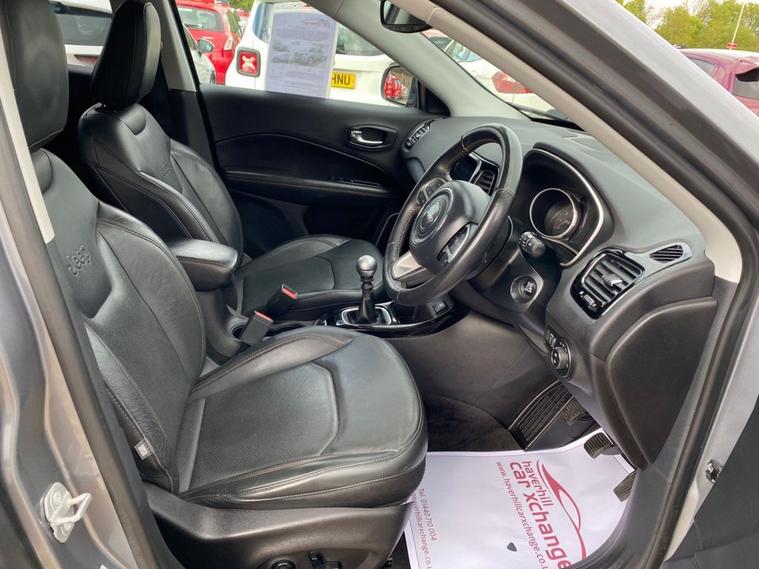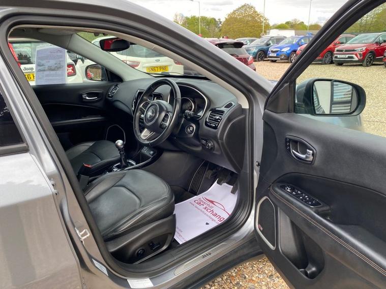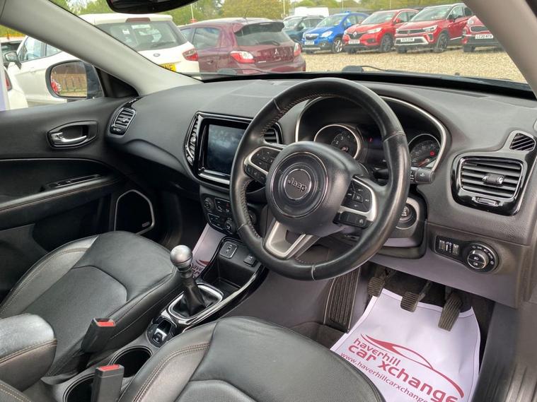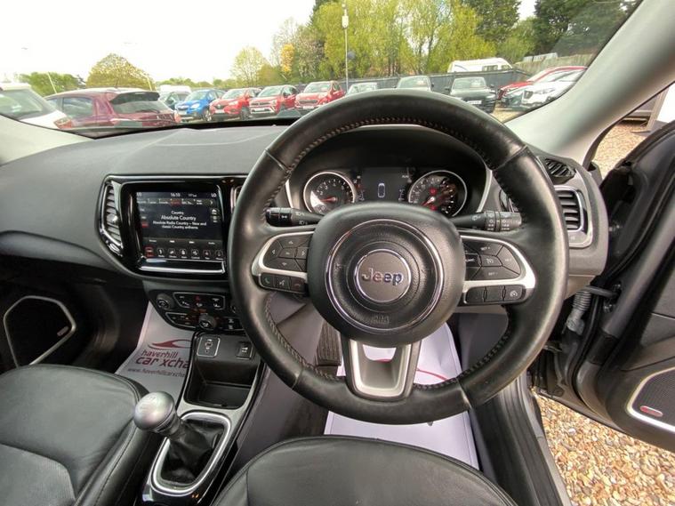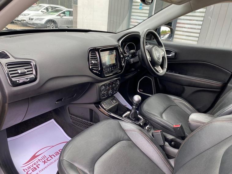 ONLY 50, 401 MILES+7 INCH COLOUR DISPLAY SCREEN WHICH FEATURES A BEATS AUDIO SYSTEM, DAB RADIO-APPLE CARPLAY/ANDROID AUTO+LANE DEPARTURE WARNING+DUAL ZONE CLIMATE CONTROL AIR-CONDITIONING+LUXURIOUD HEATED LEATHER SEATS WITH HEATED MLTIFUNCTION STEERING WHEEL+LED SIGNATURE LIGHTING+FRONT AND REAR PARKING ASSISTANCE WITH PARKING CAMERA+MAGNESIUM GREY PAINT+18 INCH ALLOY WHEELS. At Haverhill Car Xchange we would like to offer you our LOW MILEAGE Jeep Compass Limited SUV which has been finished in a Magnesium Grey paint with luxurious Black HEATED upholstery with HEATED Multifunction Steering Wheel. Excellent Specification Includes a 7 Inch Colour Display Screen which featured a BEATS Audio System, DAB Radio-Apple CarPlay/Android Auto Integration, Auxiliary 12 Volt Power Socket, Lane Departure Warning, Dual Zone Climate Control Air-Conditioning, Cruise Control, Front and Rear Electric Windows, Body Coloured Bumpers/Door Handles/Rear Roof Spoiler and Door Mirrors with Integrated Side Indicators, Halogen Projector Headlamps, LED Signature Lighting, LED Tail Lights, Front Fog Lights with Cornering Lights, Front and Rear Parking Assistance with Parking Camera, Black Roof Rails with Chrome Inserts, Heated Seats, Heated Multifunction Steering Wheel, 18 Inch Alloy Wheels, Electronic Parking Break, Electric Power Assisted Steering, Hill Start Assist, ABS Breaking System, Airbags, Alarm, Immobiliser, Remote Central Locking and ISOFIX Anchorage Points for Child Seats.