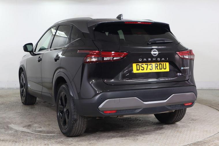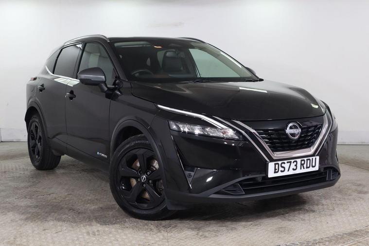 This 2023 Nissan Qashqai h e-POWER Kuro Edition, with only one owner and a clear vehicle history check, has been meticulously maintained, with its last service completed on 25th February 2026 at 42, 294 miles, and its MOT valid until October 2026. This Euro 6 compliant model features a 1.5L petrol hybrid engine, offering an impressive fuel economy of 54 mpg. Notable features include LED headlights with intelligent automatic activation, a fixed panoramic glass roof, wireless Apple CarPlay for seamless connectivity, and blind spot warning for enhanced safety. The Qashqai Kuro Edition stands out with its excellent performance, accelerating from 0-62mph in just 7.9 seconds, and its low CO2 emissions, making it a more environmentally conscious choice. Youll also appreciate the generous boot space, perfect for all your needs, and the advanced technology that contributes to a refined driving experience.