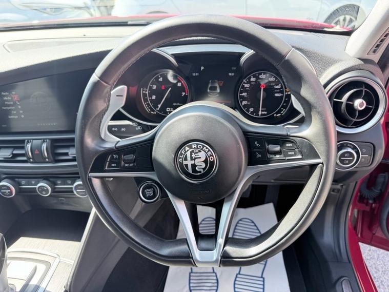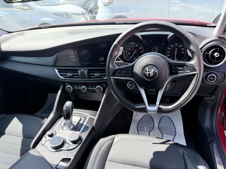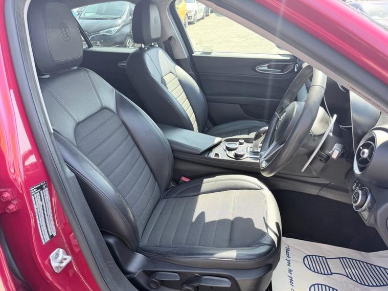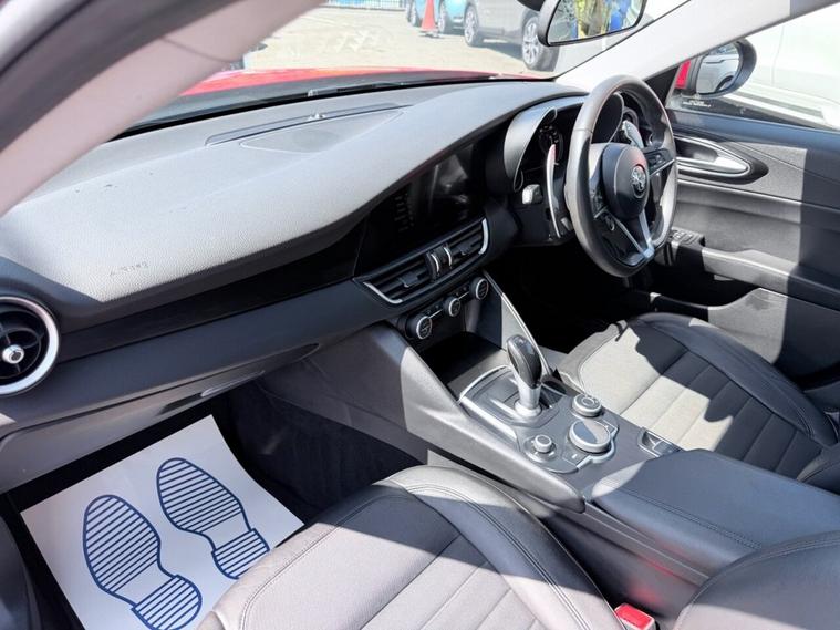 This 2017 Alfa Romeo Giulia T Super presents an exceptional opportunity with its remarkably low mileage of just 45, 600 miles, a significant advantage for its age. This Euro 6 compliant 2.0L petrol model has been meticulously maintained serviced at 17K, 24K, 29K, 37K, 43K, 44K, 45K, with its last service recorded at 45, 540 miles on 26th March 2026, and comes with a 12 month MOT provided on purchase. With only two previous owners, this Giulia Super benefits from a 3 month warranty for your peace of mind. Notable features include stylish 17in alloy wheels in a 7 hole design, convenient rear parking sensors, and automatic headlights. Inside, youll find the Alfa Connect 3D Nav 8.8in infotainment system complete with Bluetooth connectivity, and for an engaging driving experience, gear shift paddles are integrated into the steering wheel. This Alfa Romeo Giulia T Super stands out with its impressive performance, achieving 0-60mph in a swift 6.6 seconds, demonstrating its dynamic capabilities. Its low CO2 emissions and placement within a low insurance group further enhance its appeal, suggesting it offers a more economical and accessible ownership experience compared to many similar vehicles.