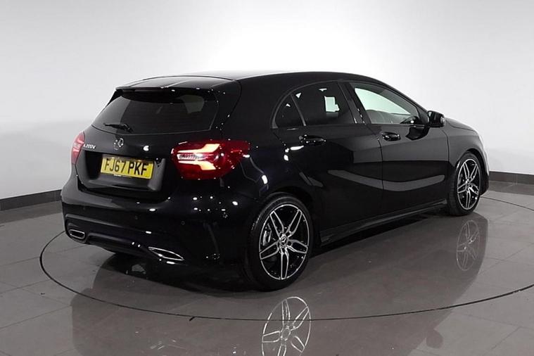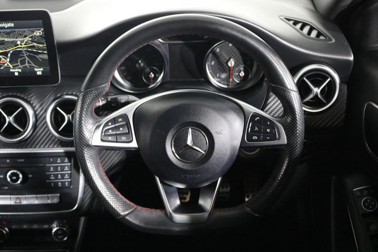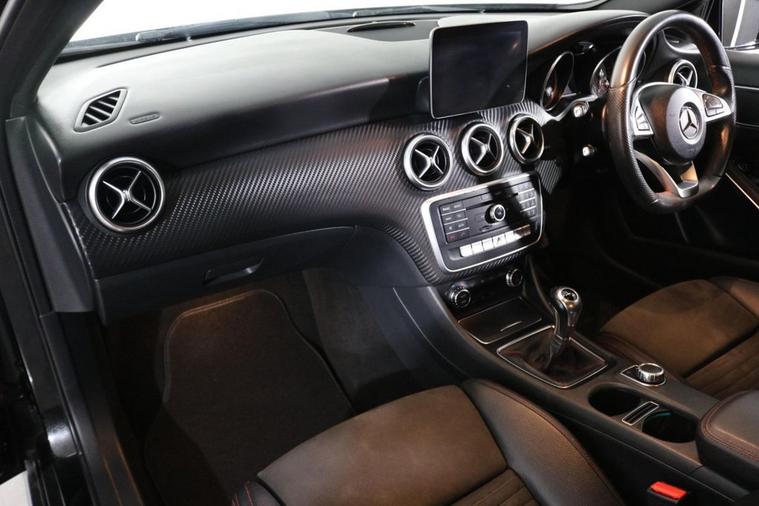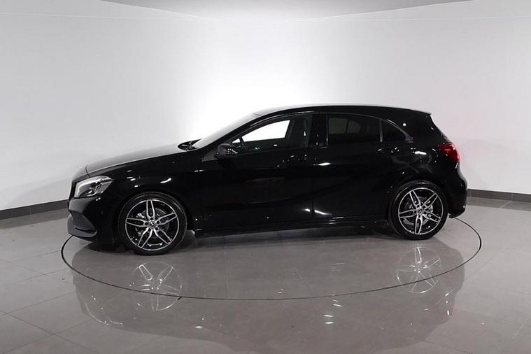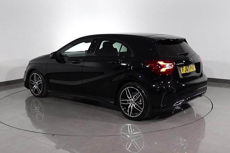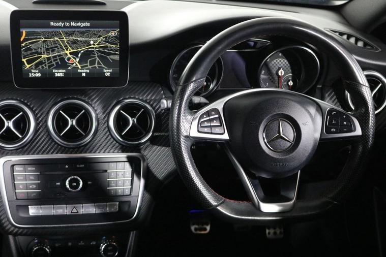 This desirable Mercedes A200D AMG Line Premium finished in Cosmos Black looks fantastic complemented by Night Pack, 18 inch Alloy Wheels, Privacy Glass and AMG Body Styling. Find your way with integrated SATELLITE NAVIGATION with 8 inch LCD Display. Park in ease with REVERSE CAMERA and FRONT & REAR PARKING SENSORS. Sit in luxury with 1/2 LEATHER Upholstery and HEATED FRONT SEATS. Keep connected with BLUETOOTH Phone System. Comfortable to drive with Dual-Zone CLIMATE CONTROLLED AIR CONDITIONING and CRUISE CONTROL with Speed Limiting Function. Safe to journey with Attention Assist and Active Brake Assist. Well equipped with Power-Fold Door Mirrors, Auto Headlights and Rain Activated Wipers. Also fitted with ISOFIX seats, Multifunctional Steering Wheel, Dynamic Select, Alarm and Remote Door Locking. Buy in confidence with SERVICE HISTORY with 5 x Documented Services.