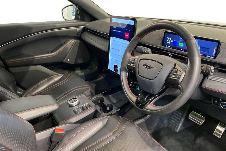 This 2023 Ford Mustang Mach-E Extended Range boasts exceptionally low mileage for its age, having covered just 7517 miles, and comes with a full dealership service history. This electric, four wheel drive model features a substantial 99 kWh battery, offering a maximum range of 335 miles when new. Inside, youll find a Wireless Device Charging Pad, heated driver and passenger seats, and the Tech Pack Plus, which includes an opening panoramic sunroof, a 360 degree camera for effortless parking, and a premium branded sound system. The Next Generation SYNC system with connected navigation and natural voice search, along with Bluetooth connectivity, ensures you stay informed and entertained on every journey. Experience exhilarating performance with this Mustang Mach-E, capable of accelerating from 0 to 60mph in a swift 5.8 seconds, demonstrating its superior capability compared to other vehicles in its class. For convenient charging, a full charge at home using a 7kW charger takes approximately 14 hours and 36 minutes, while rapid public charging can take the battery from empty to 80% in just 51 minutes. This combination of impressive range, rapid charging options, and advanced technology makes this electric SUV a compelling choice for those seeking both performance and practicality. Ford Service History Below; 18/12/2025 6, 806 Miles @ Trust Ford Barking