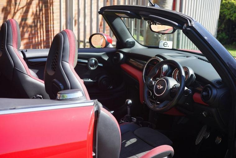 A stunning MINI 2.0 John Cooper Works Convertible in Chili Red with Carbon Black JCW Dinamica Leather Seats which has covered 54k miles. Heated Seats, Media XL with Large Screen, Harman Kardon and 18inch JCW Cup Wheels. Comprehensive MINI Service History.