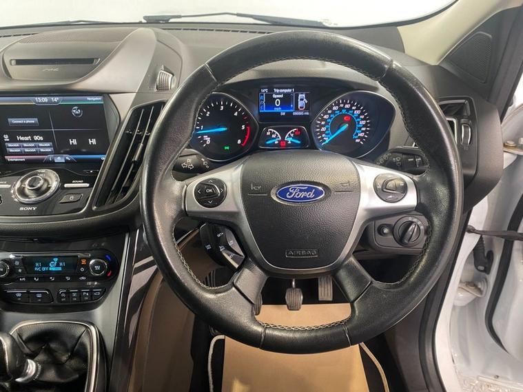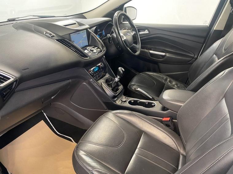 The Kuga has long been one of the better SUV Crossover models to drive and this superbly equipped model is not to be missed. Finished in Frozen White theres also 19 alloy wheels and the exterior is enhanced with dark tint privacy glass, high level spoiler, an electric panoramic sunroof and roof rails. Inside theres sports style seats that are trimmed in full Carbon leather upholstery which are exceptionally clean and comfortable and have the benefit 3-stage electric heating. This well equipped model has Fords superb SYNC touchscreen media system that has navigation, Bluetooth connectivity, Apple CarPlay, Android Auto and DAB radio - all accessed via voice control if required. Theres also cruise control, front / rear park sensors plus a camera, dual zone climate control and a leather multi-function steering wheel. The vehicle is powered by Fords reliable 2.0 TDCi engine coupled to a 6 speed manual gearbox, providing 178 BHP, up to 6 mpg according to Fords data and its ULEZ compliant.