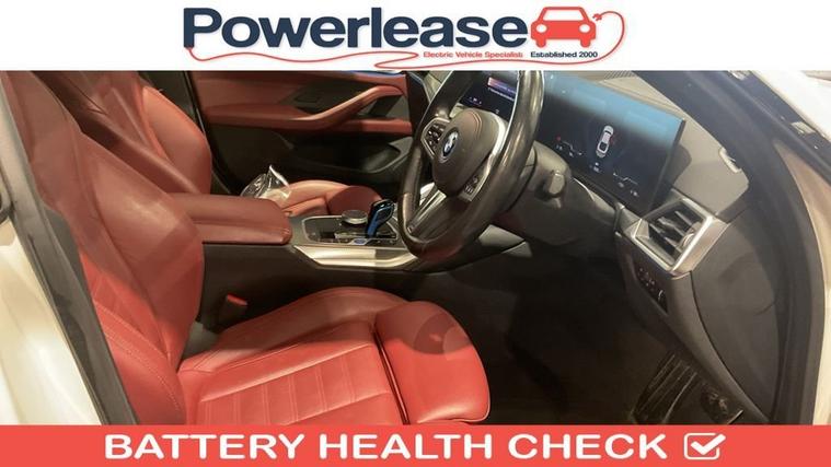 **94.5% BATTERY HEALTH** This 2022 BMW i4 40 M Sport is a superb example, having had only one owner since new. As an electric vehicle, it offers a smooth and responsive driving experience, complemented by the sporty M Sport trim. Inside, youll find a luxurious Vernasca Leather interior in Tacora Red with Black Stitching, and the BMW Live Cockpit Plus, which includes Bluetooth connectivity. For convenience and safety, it features a Reversing Assist Camera and a Head Up Display, making every journey more enjoyable. The Electric Glass Sunroof adds an open and airy feel to the cabin. The BMW i4 40 M Sport boasts an impressive battery total capacity of 84 kWh, providing a maximum range of 351 miles when new, which is a significant advantage for longer trips. This electric performance is further highlighted by its rapid acceleration, reaching 0-60mph in just 5.6 seconds, demonstrating its dynamic capabilities. Charging is also convenient, with a full charge at home taking approximately 12 hours and 30 minutes on a 7kW charger, while fast public charging can take you from empty to 80% in a swift 34 minutes. Additionally, this model offers a large boot space, making it practical for everyday use and travel.