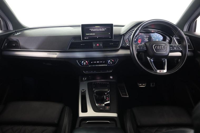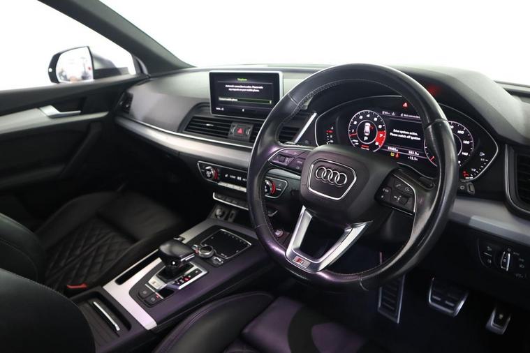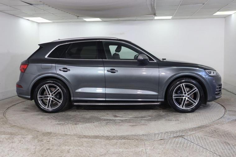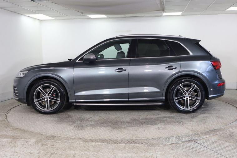 With an MOT valid until April 2027 and a clear vehicle history check, this 2019 Audi SQ5 TFSI V6 offers excellent peace of mind. Powered by a 3.0 litre petrol engine and featuring Four Wheel Drive, this Euro 6 compliant model is ready for any journey. Its last service was completed on 7th April 2026 at 59, 503 miles, ensuring it has been well maintained. Notable features include automatic LED headlights with dynamic rear indicators, light and rain sensors, and a deluxe 3 zone climate control system for ultimate comfort. The MMI Navigation Plus with MMI Touch and Bluetooth interface keeps you connected and on track. This Audi SQ5 stands out with its impressive acceleration, reaching 0-62mph in just 5.4 seconds, demonstrating its dynamic performance. It also benefits from a low insurance group, making it a more economical choice compared to similar vehicles. The generous boot space provides ample room for luggage or shopping, further enhancing its practicality. With a substantial towing weight of 2400 kg, this SQ5 is also a capable choice for those needing to tow.