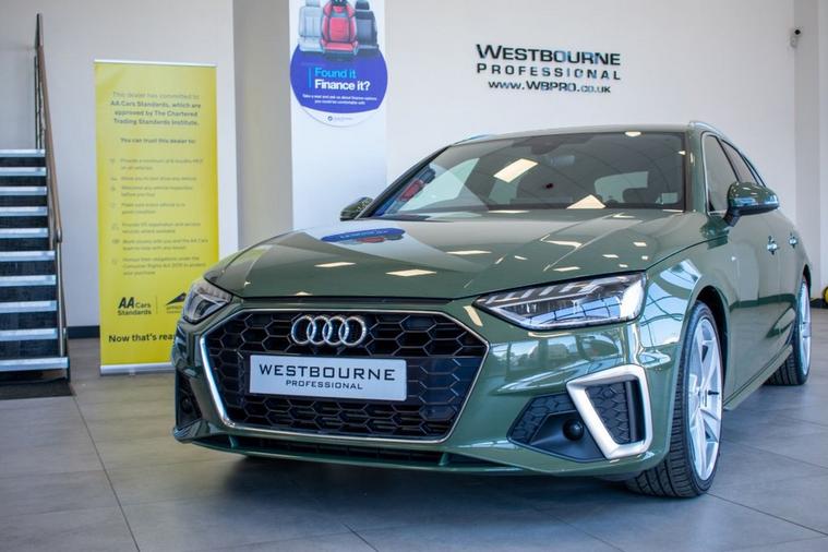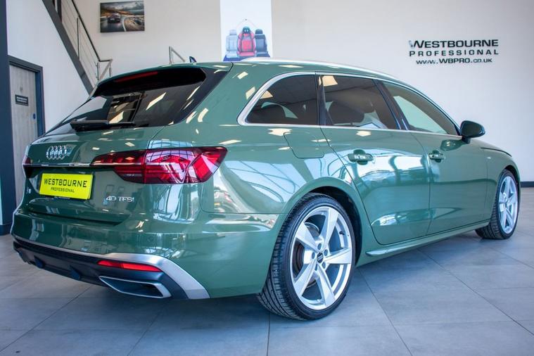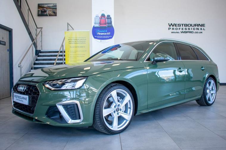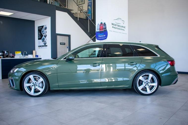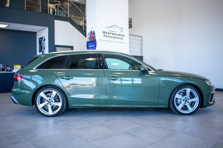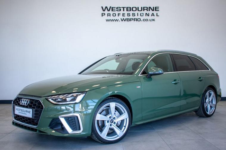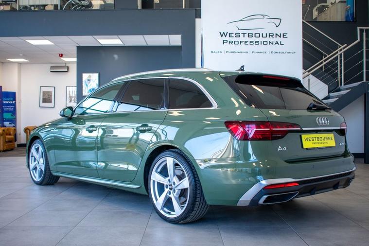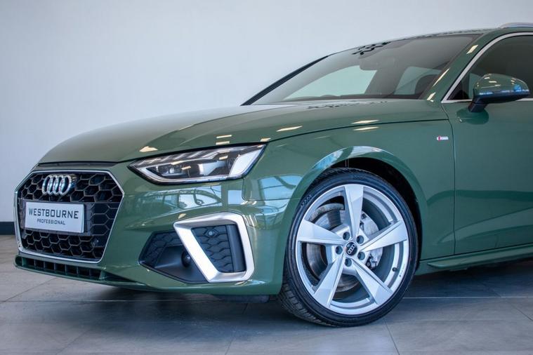 2024 24 Audi A4 Avant 2.0 TFSI 40 S Line, finished in District Green with Black Leather & Dinamica interior. Equipped with great specification including Audi MMI Satellite Navigation System, Heated Front Seats, Audi Virtual Cockpit, Front & Rear Parking Sensors, Rear View Camera, Wireless Smartphone Interface for Apple CarPlay / Android Auto, Cruise Control, Audi Drive Select, Power Tailgate, Automatic LED Headlights with High Beam Assist, Heated Power Folding Mirrors, Leather Multifunction Steering Wheel with Paddle Shift, Automatic 3-Zone Climate Control, Rear Privacy Glass and more. A one owner example complete with full service history carried out at 19032 and 34862 miles.
