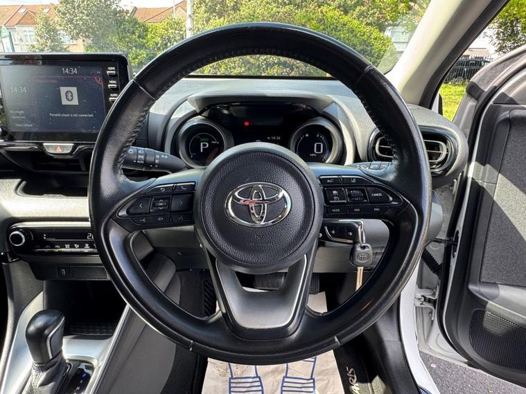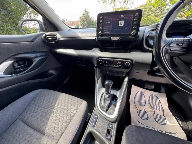 The 2020 Toyota Yaris 1.5 VVT-h Design Hybrid E-CVT is a stylish, economical and highly sought-after hatchback, finished in White and having covered just 42, 800 miles. Powered by Toyotas efficient 1.5-litre petrol hybrid engine producing 116 ps, paired with the smooth E-CVT automatic gearbox, this Yaris offers excellent fuel economy, low running costs and a comfortable drive whether around town or on longer journeys. Being the Design model, it comes with a fantastic specification including satellite navigation, reversing camera, Bluetooth connectivity, Apple CarPlay and Android Auto, dual-zone climate control, cruise control, alloy wheels, automatic headlights, lane assist and a touchscreen infotainment system. The vehicle is HPI clear, comes with warranted mileage and will be supplied with a new MOT, a fresh service and warranty included for complete peace of mind. This is a clean and well-presented 5-door hybrid hatchback that is ideal for first-time drivers, commuters or anyone looking for a reliable and economical automatic. Due to demand, we recommend arranging a viewing or placing a deposit to avoid disappointment.