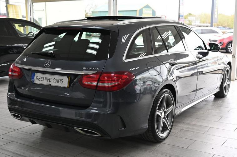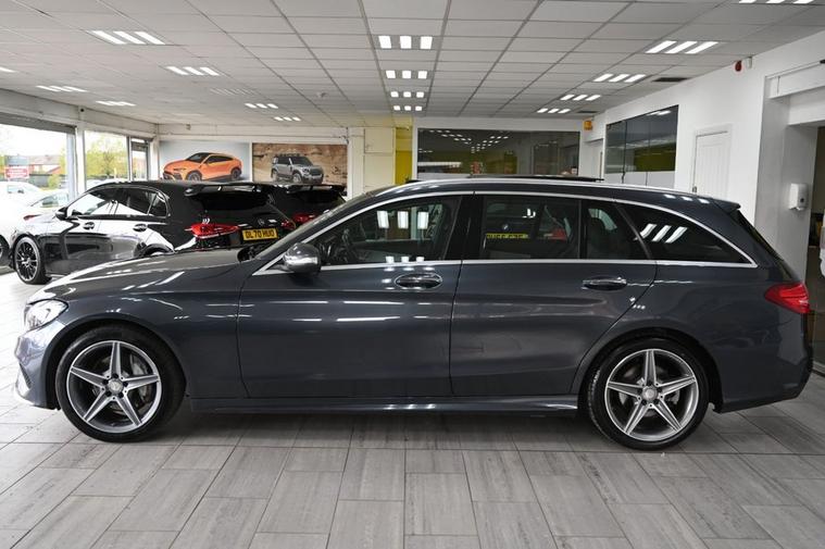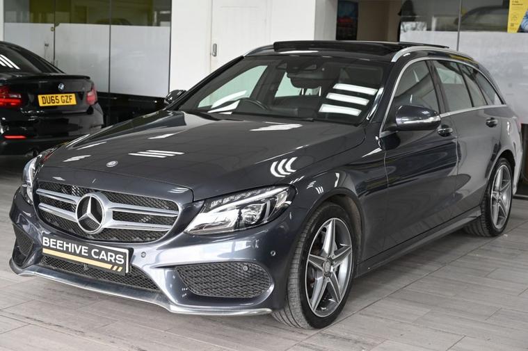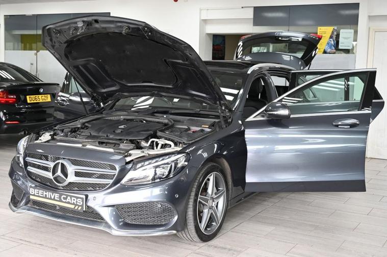 DRIVE AWAY TODAY OR HOME DELIVERY ANYWHERE IN MAINLAND UK FINANCE & PART EXCHANGE ARRANGED ONLINE **7 DAY MONEY BACK GUARANTEE** Nice spec Mercedes c220 blue-tec amg line in metallic grey with 1 OWNER from new full service history sat nav cd dab radio bluetooth media usb reverse camera panoramic glass roof full leather seats with armrest heated seats electric memory seats electric folding door mirrors front and rear parking aid sensors xenon lights eco comfort sport individual driving modes flat bottom steering wheel with f1 style paddleshifts electric push button tailgate alloys privacy